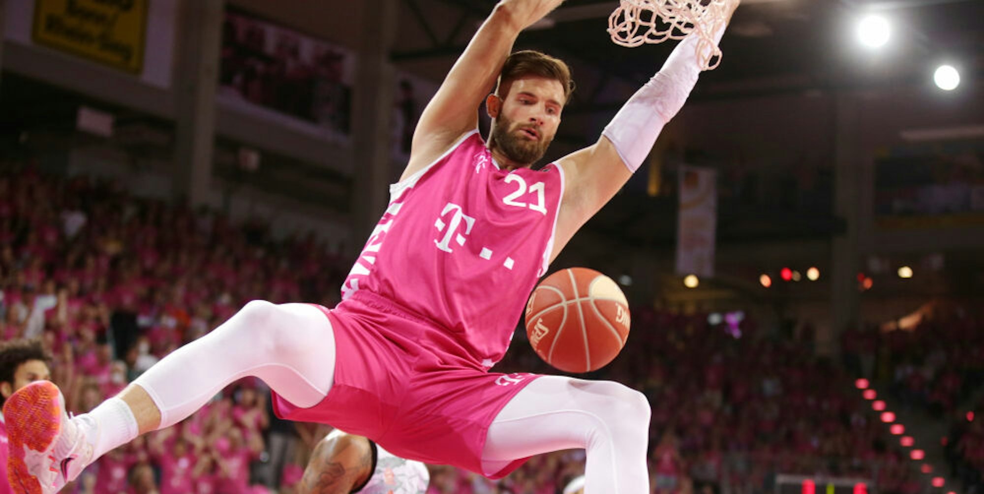 Gemeinsam mit ihrem Sponsor Telekom verteilten die Baskets vor der Partie 6000 T-Shirts auf den Sitzen, so dass die Arena zu einer Festung in Magenta wurde. Dabei war die Anspannung vor der überragenden Kulisse groß, bei Spielern wie auch bei Trainern. So kassierten beide Cheftrainer in der ersten Halbzeit bereits Technische Fouls. Iisalo gleich in der Anfangsphase, als er seine mit Parker Jackson-Cartwright (PJC), Skyler Bowlin und Karsten Tadda eher klein gewählte Aufstellung zu Beginn doch im Nachteil gegen die physisch überlegenen Hünen der Gäste sah. Trinchieri folgte gegen Ende des zweiten Viertels, als bei ihm der Frust hochzukochen schien und er seiner Mannschaft in der Auszeit kurz darauf „dumme Ballverluste“ vorwarf.