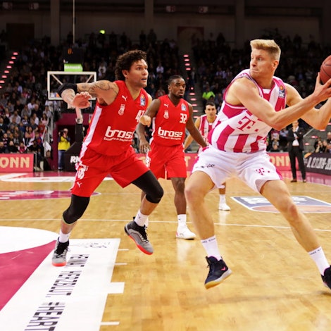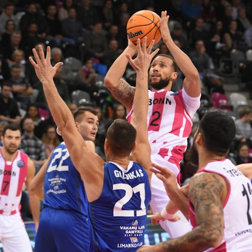 Auch deshalb ist vor dem sechsten Spieltag der Gruppe D das Rennen um die vier Play-off-Plätze noch völlig offen. Die Telekom Baskets liegen zwar als Tabellenzweiter optisch sehr gut im Rennen, sie haben mit 3:2-Siegen aber nur ein gewonnenes Spiel mehr als der Siebte, der ungarische Landesmeister Szombathely (2:3). Und: Die Bonner sind schon dreimal zu Hause angetreten, die Ungarn aber erst zweimal.