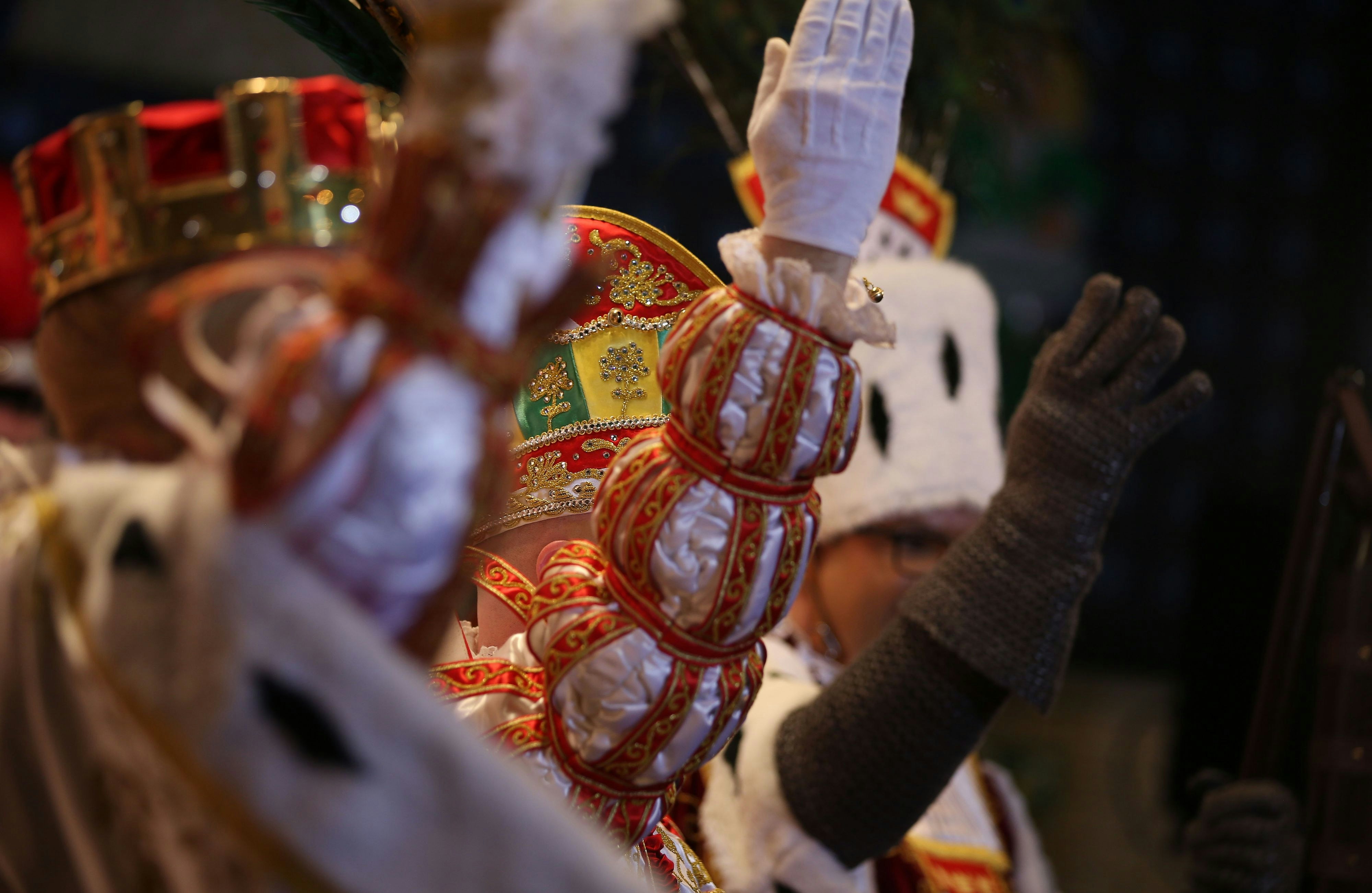 Prinz, Bauer und Jungfrau bilden in Köln das Dreigestirn. Die drei regieren über das närrische Volk während einer Session des Kölner Karnevals. Das Dreigestirn wird auch als Trifolium bezeichnet. (Foto: dpa)