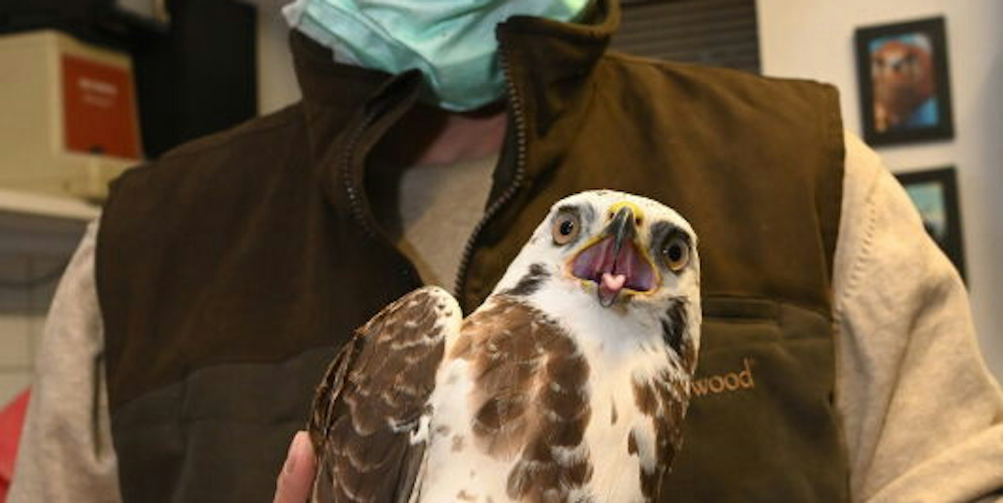 Behutsam hält Dirk Sindhu den Bussard und untersucht ihn auf Verletzungen.