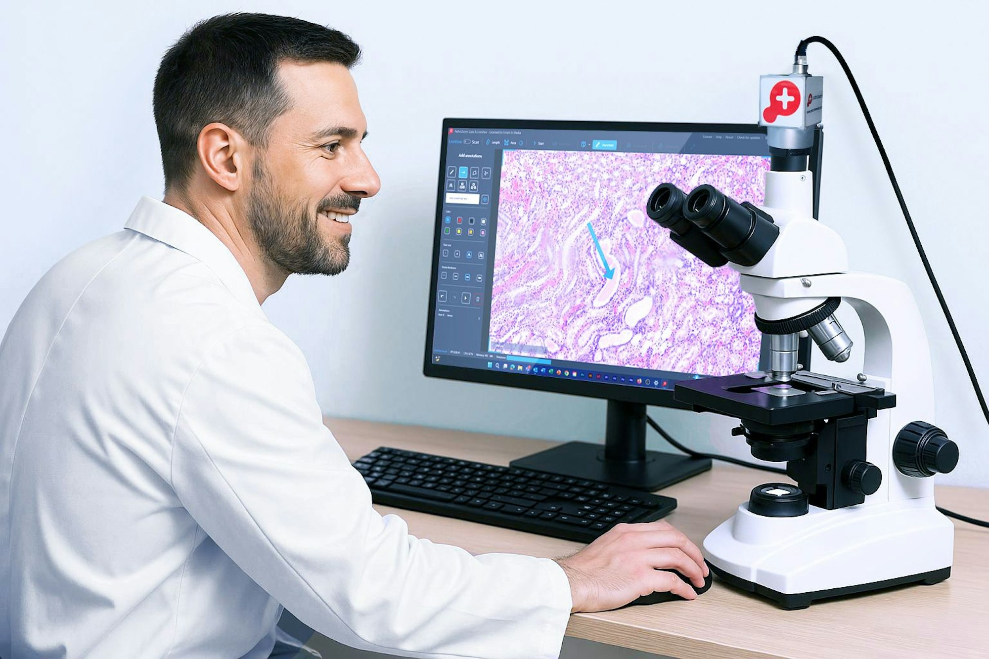Dr. Martin Weihrauch: Freiheit bedeutet, dass Pathologen nicht mehr an Orte, Geräte oder starre Abläufe gebunden sind. Sie sollen Fälle sofort teilen, digital begutachten und moderne Werkzeuge nutzen können – ohne technische Hürden. Für mich ist das eine Grundvoraussetzung für gute Medizin. Viele arbeiten weiterhin ausschließlich am klassischen Mikroskop.
