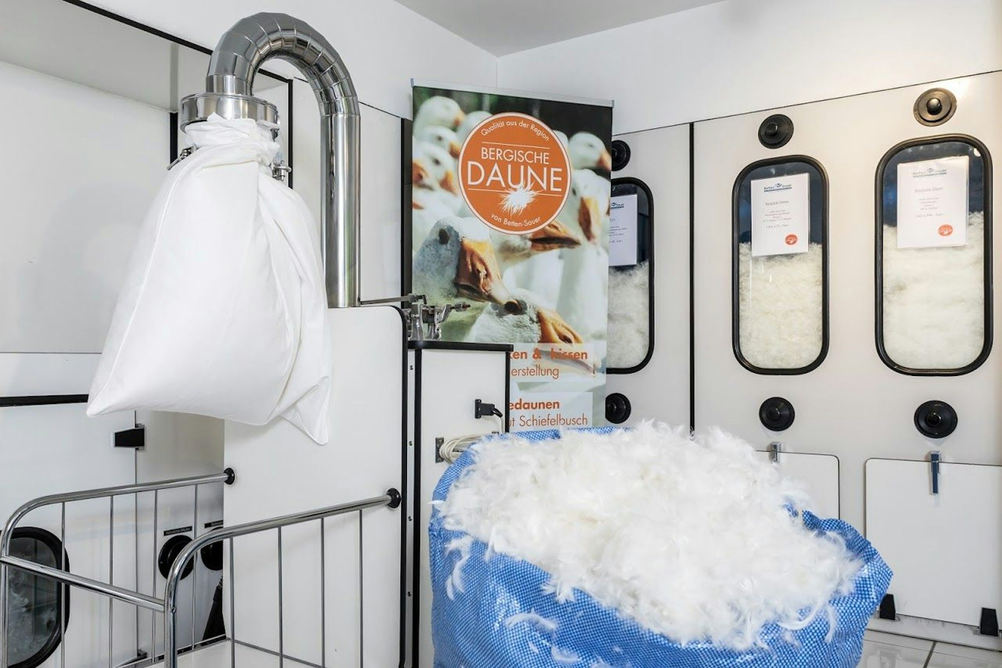Wir verwenden zu einem großen Teil Qualitätsdaunen vom Gut Schiefelsbusch aus dem Bergischen Land.