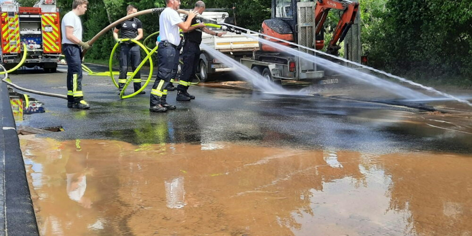 Bis Sonntagmittag waren die Feuerwehrleute im Einsatz, um Straßen wieder freizuschneiden oder Kanaldeckel, die die Wassermassen angehoben hatten, wieder in Position zu bringen. Keller mussten ausgepumpt, Schlamm von Fahrbahnen gespült werden.