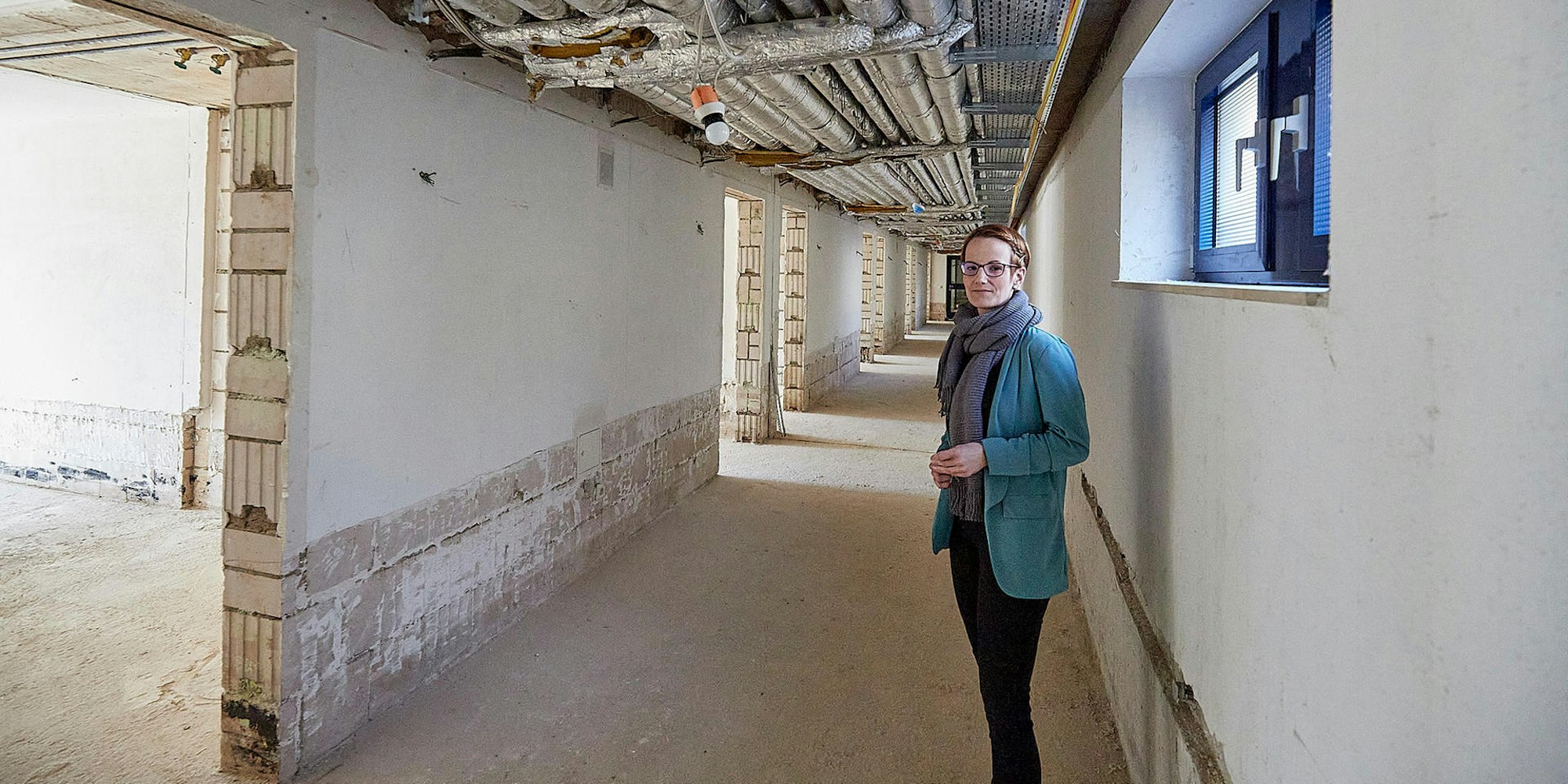 Noch ist alles Baustelle: Jessica Mösch im entkernten Erdgeschoss des Hauses.
