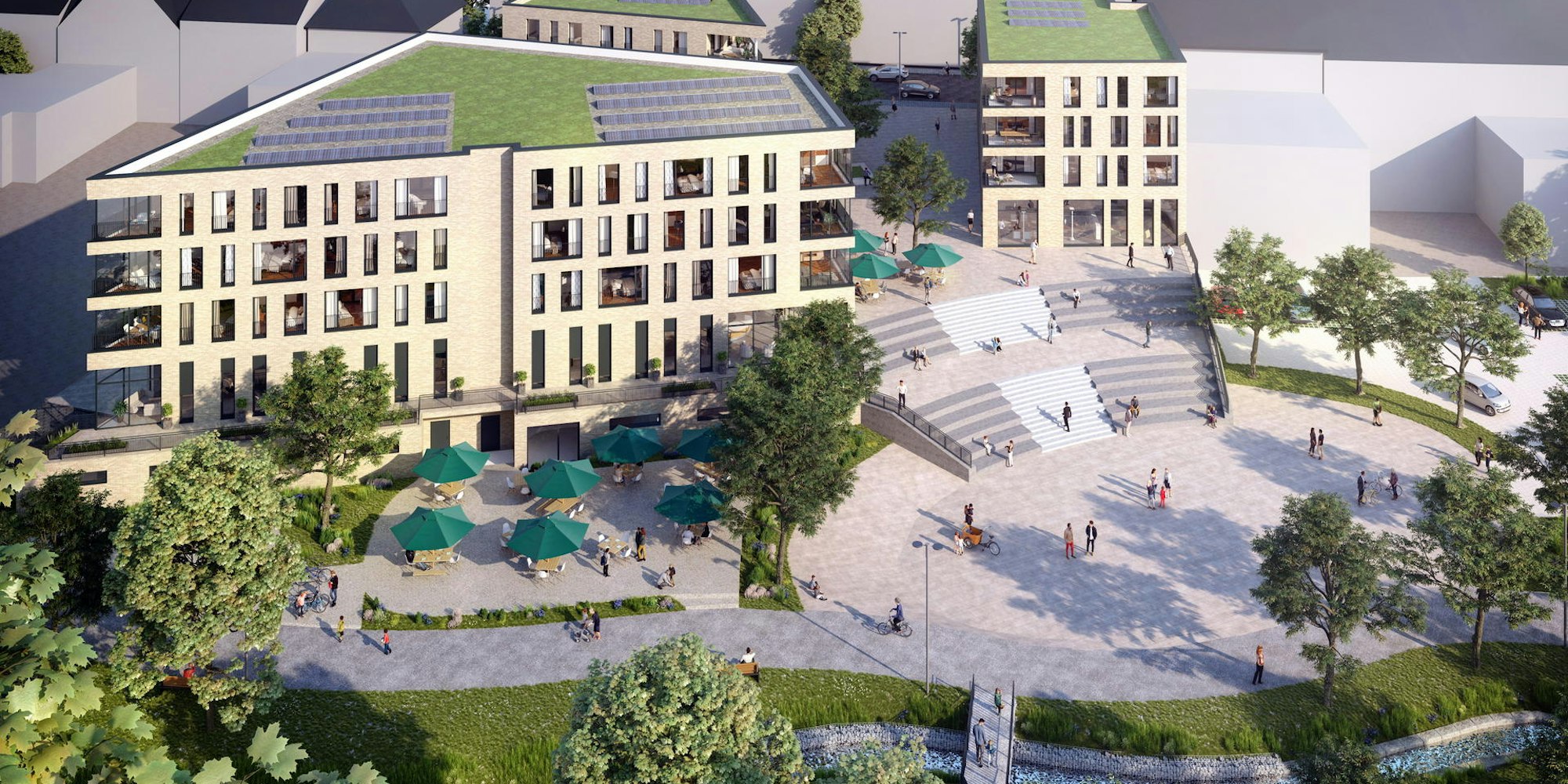 So könnte das frühere Merkur-Gelände in der Stadtmitte Waldbröls einmal aussehen.