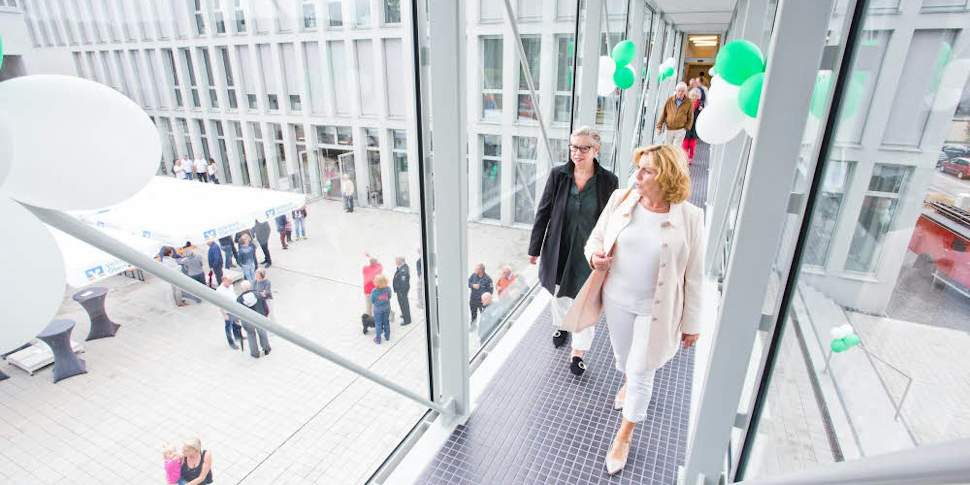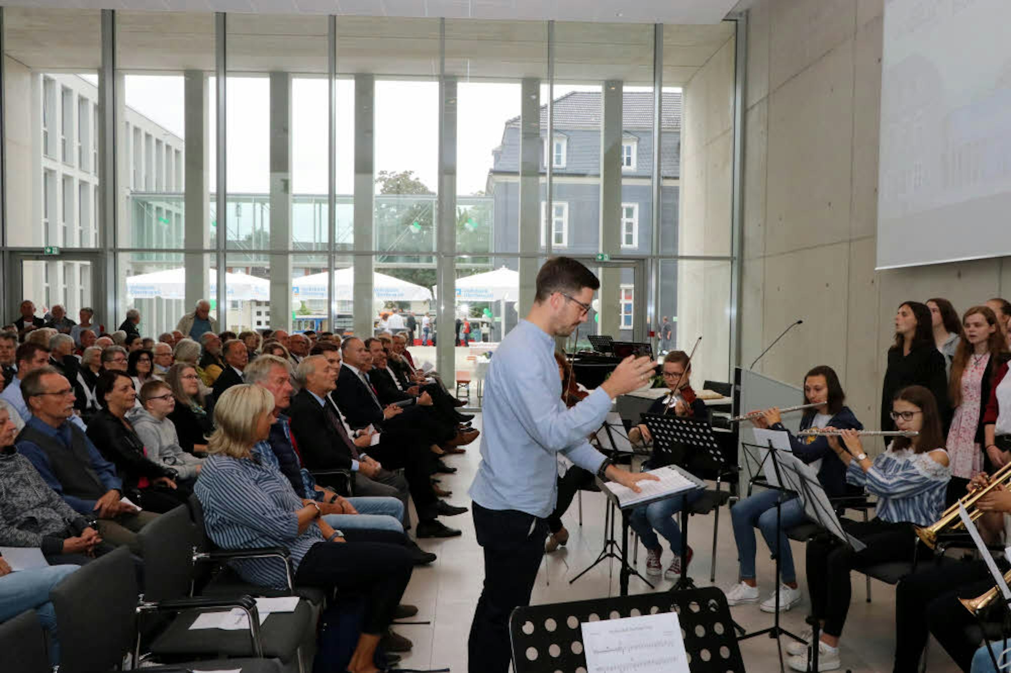 Dieser Gedanke durchzog auch die Reden des Festakts im Bürgersaal, dem Zentrum des Areals. Nicht nur geladene Gäste durften kommen, sondern alle, die wollten, so waren die 140 Sitzplätze bald vergeben. Orchester und Chor des Hollenberg-Gymnasiums unter der Leitung von Niklas Obergfell umrahmten das Programm mit feierlicher Musik.