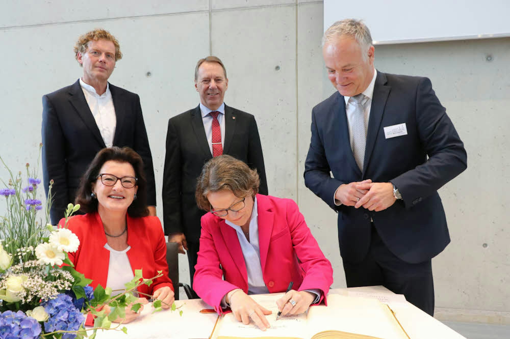 Beim Festakt im Bürgersaal trugen sich (v.l.) Reimar Molitor, Gisela Walsken, Jochen Hagt, Ina Marrenbach und Peter Koester ins Goldene Buch ein.