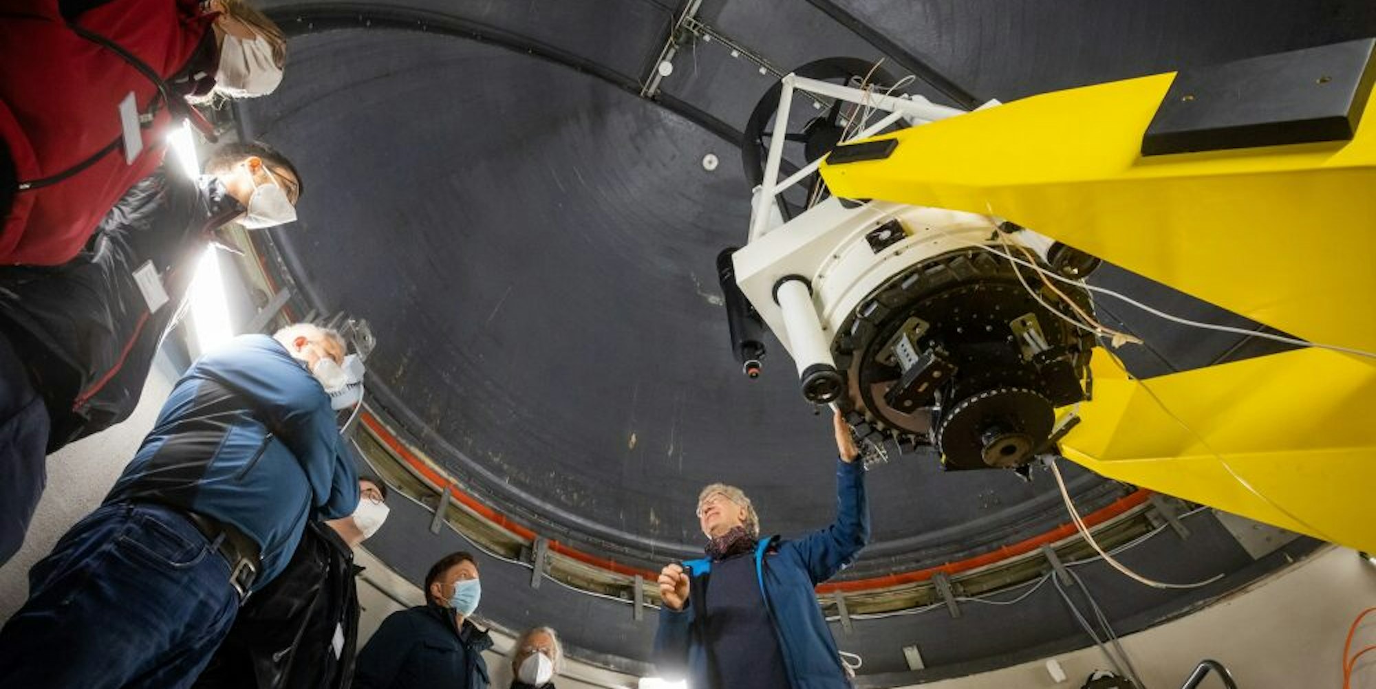 Im großen Kuppelturm erklärte Dr. Klaus Vollmann (r.) den Lehrern, wie das Hauptteleskop funktioniert.