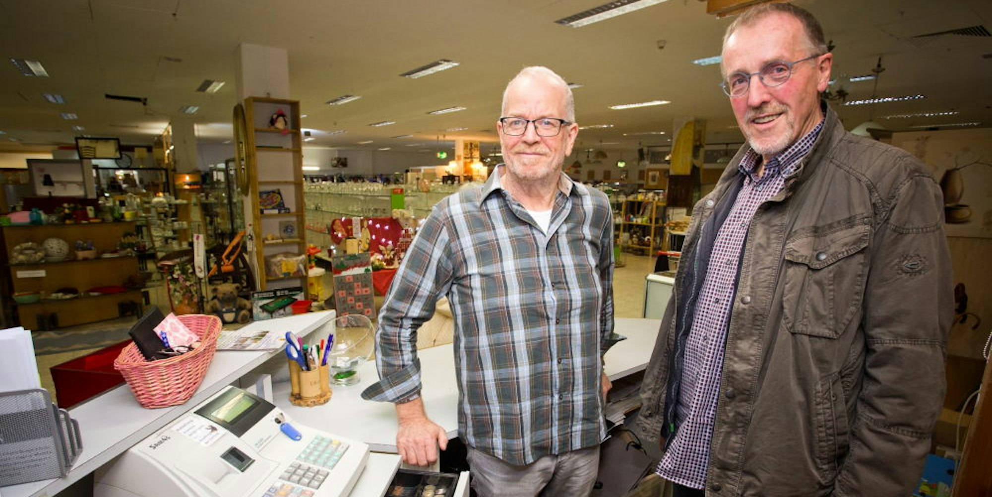 Integration im Kaufhaus: Frank-Peter Twilling (l.) und Hans Jürgen Schweizer haben 16 Angestellte und 40 Ehrenamtler im Team.