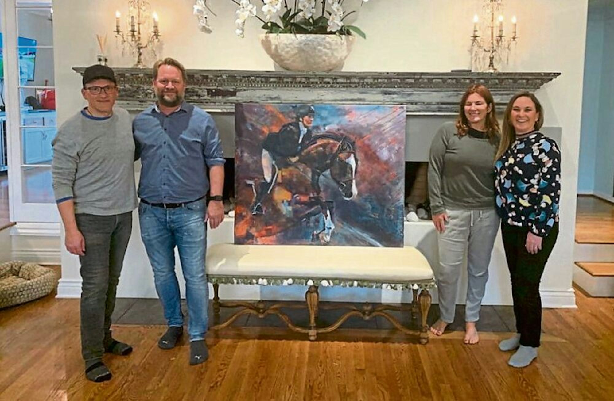 „Ich wollte alles, aber keine Klammer in den Mahagoni-Boden schießen“, erinnert sich die Künstlerin, die nicht nur das Bild per Flugzeug in die USA brachte, sondern auch den Holzrahmen. Letztlich klappte es ohne Zwischenfälle, das Acrylgemälde, das das Pferd der Schauspielerin Ann Russo zeigt, auf den Rahmen zu spannen.