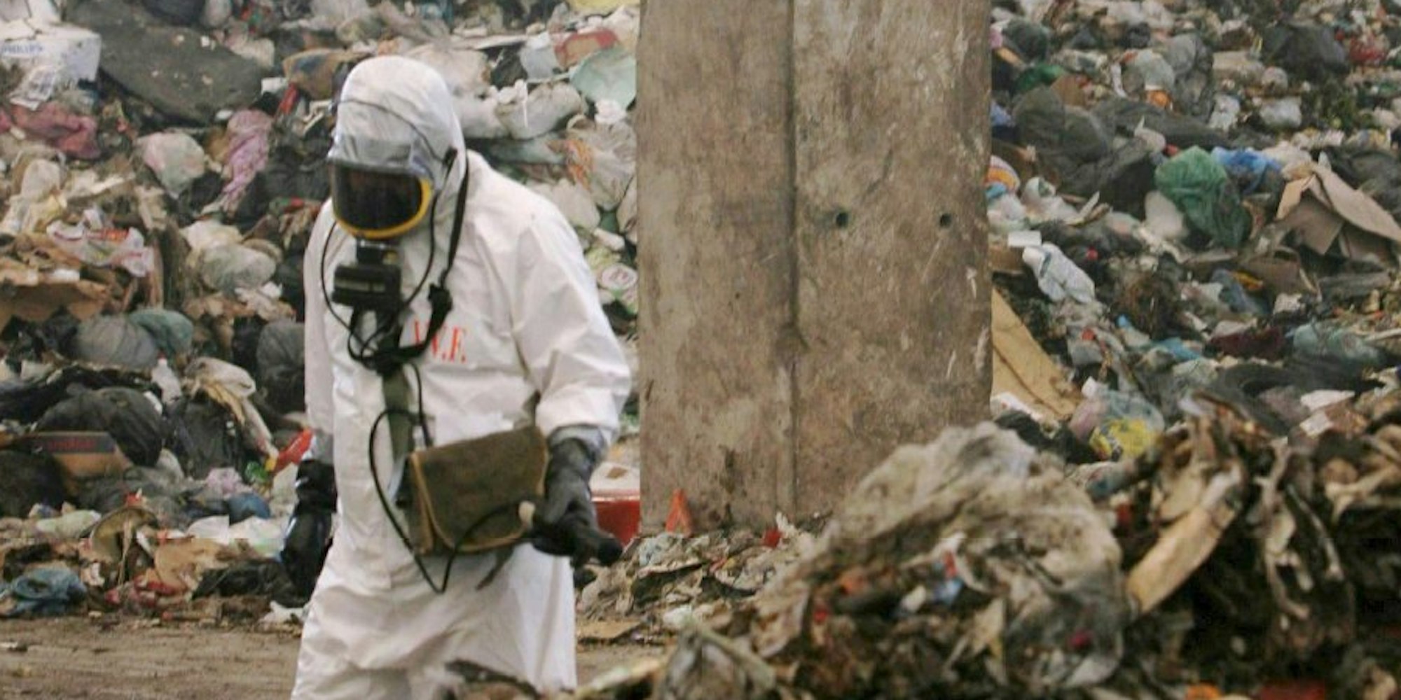 Ein Feuerwehrmann überprüft in Neapel eine Mülldeponie mit einem Geigerzähler auf Radioaktivität.