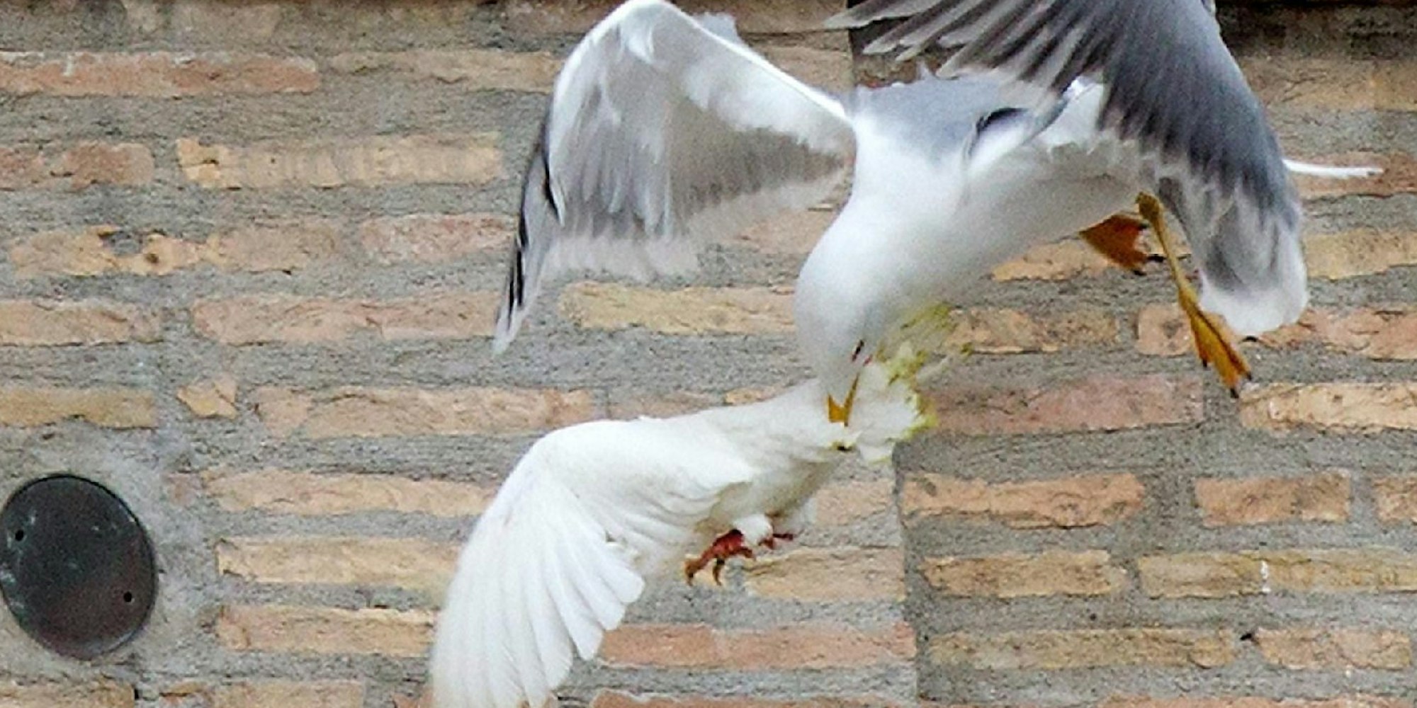 Kein schönes Bild: Eine Mittelmeermöwe greift in Rom eine Taube an. (Foto: dpa)