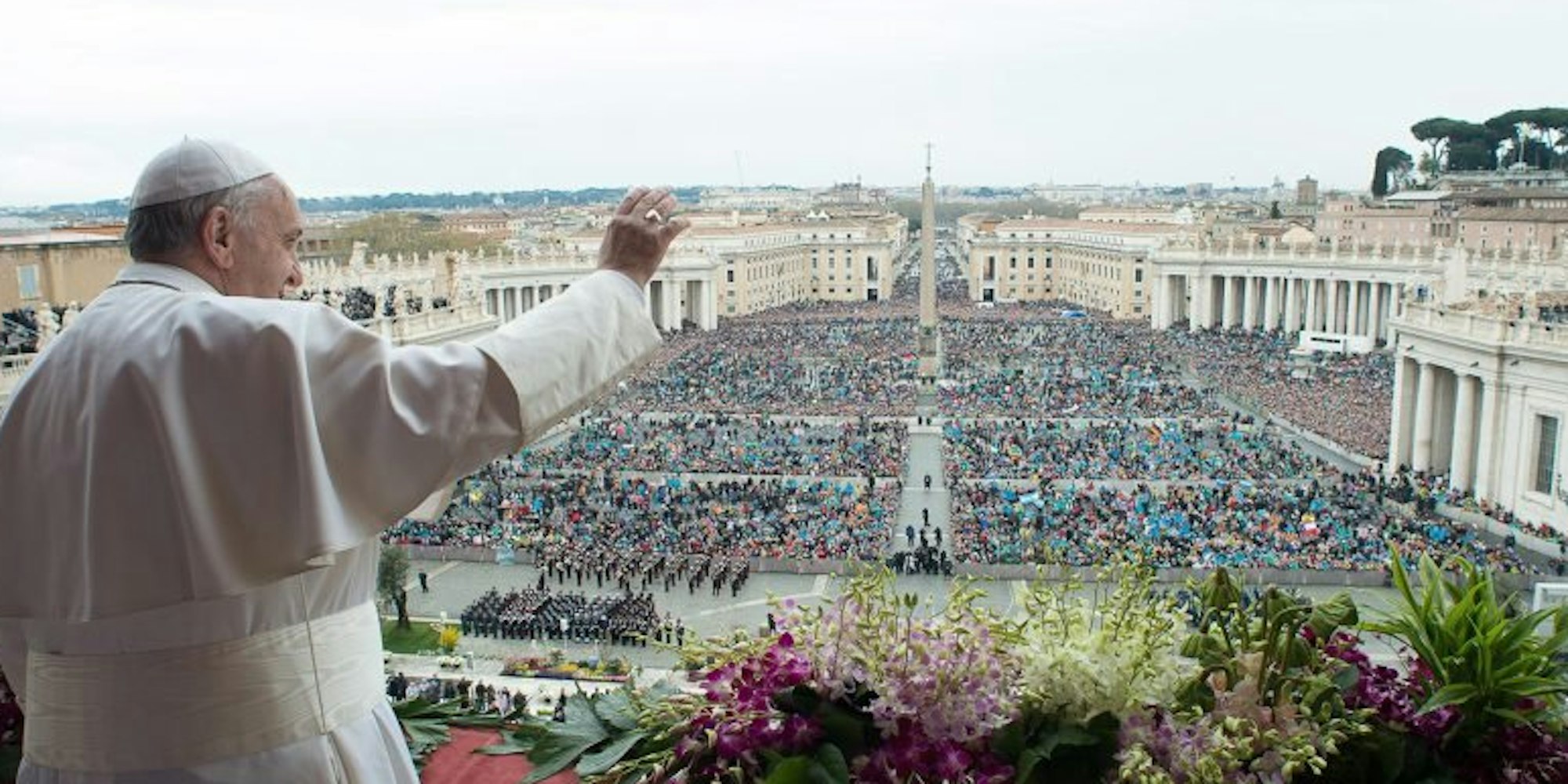 Den Segen „Urbi et Orbi“, der Stadt und dem Erdkreis, sprach er von der Loggia des Petersdoms. Dies war der Höhepunkt der traditionellen Osterfeiern in Rom. Zuvor feierte Franziskus mit den Gläubigen, die im strömenden Regen mit Schirmen ausharrten, die Messe zur Auferstehung Christi. Danach hörte es auf zu regnen und der Papst fuhr einige Runden auf dem Petersplatz und begrüßte die Pilger. Für Syrien und den Irak forderte der Papst ein Ende des „Getöses der Waffen“. Die internationale Gemeinschaft dürfe „angesichts der ungeheuren humanitären Tragödie“ nicht untätig bleiben. Franziskus forderte die Menschen auf, sich gegenseitig mit Respekt und Demut zu begegnen. „Das ist nicht Schwäche, sondern wirkliche Kraft!“