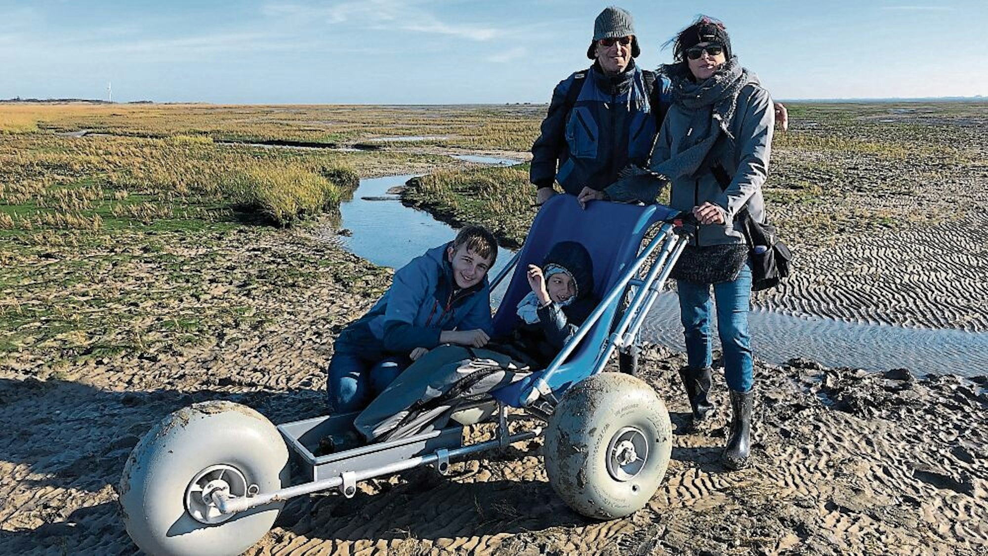 Sandra Baumann mit ihrem Mann Harry und den Söhnen Luca und Leon im Urlaub auf Spiekeroog.