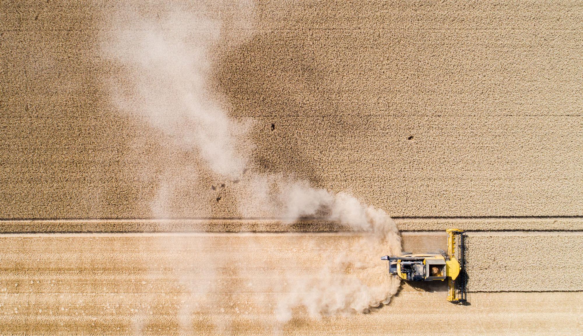 Weizenernte bei extrem heißem Wetter im Juli 2022.