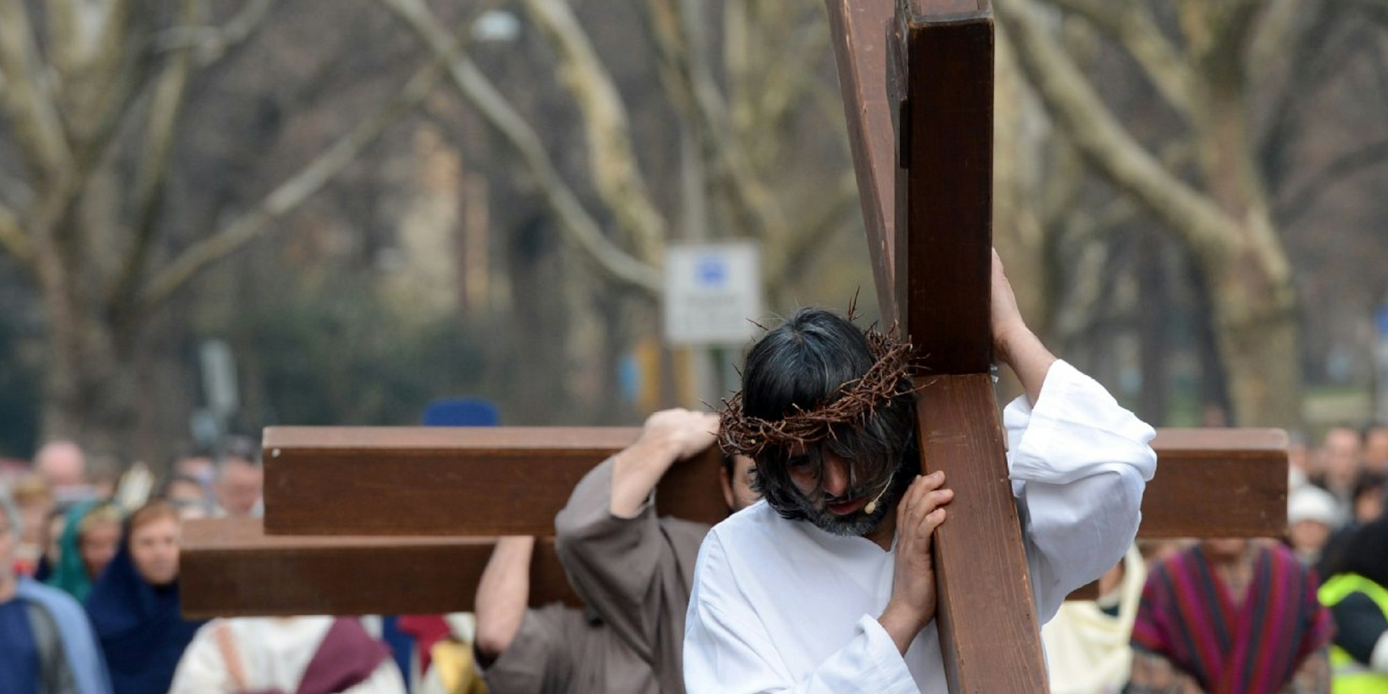 Mitglieder der italienisch katholischen Gemeinde San Martino spielen in Stuttgart Szenen aus der Leidensgeschichte Jesu nach.