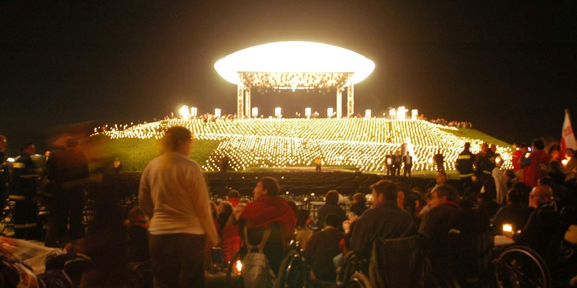 Vor dem Beleuchteten Altar auf dem Papsthügel wurden 800.000 Kerzen angezündet, für jeden Teilnehmer eine.