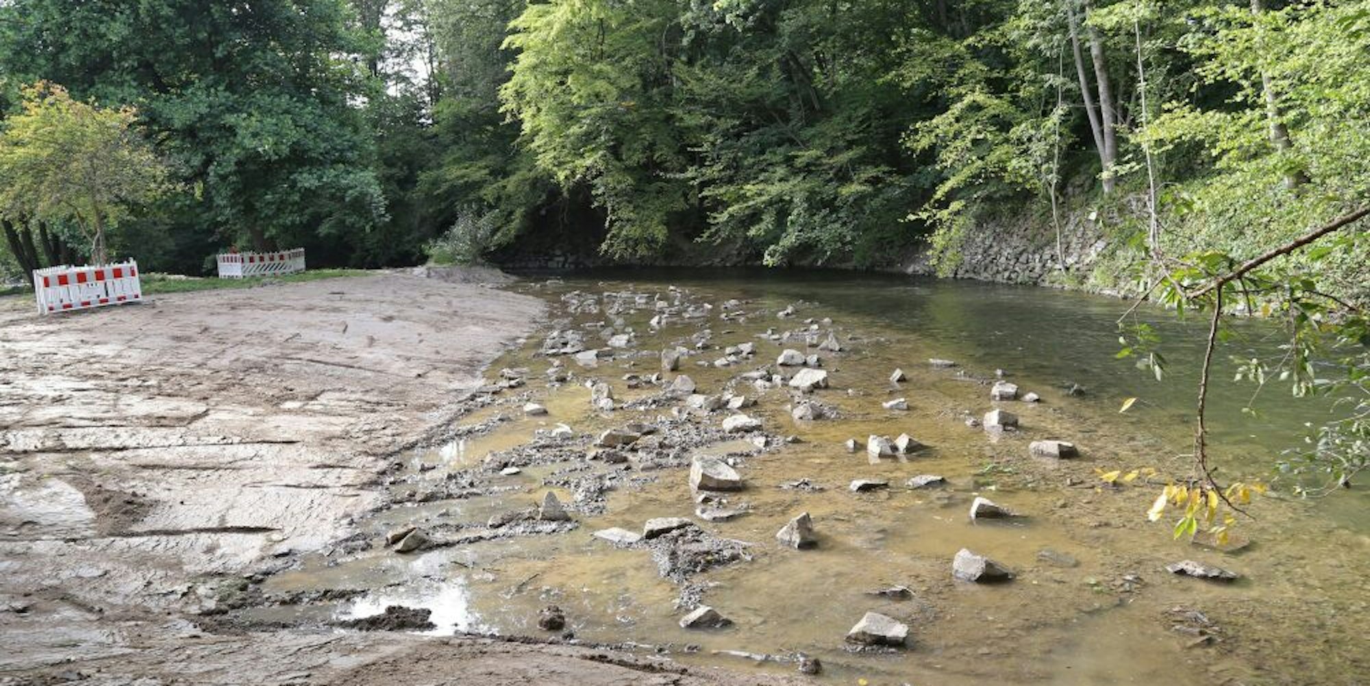 Bis zur Eröffnung des Parks im kommenden Jahr werden die im seichten Wasser abgelegten Felsbrocken eingesunken sein und der vom künstlich eingebrachten Sediment noch trübe Fluss sich geklärt haben. Der Aggerverband will der Natur zudem mit Pflanzungen und Einsaat auf die Sprünge helfen und Totholz als Barrieren einbauen.