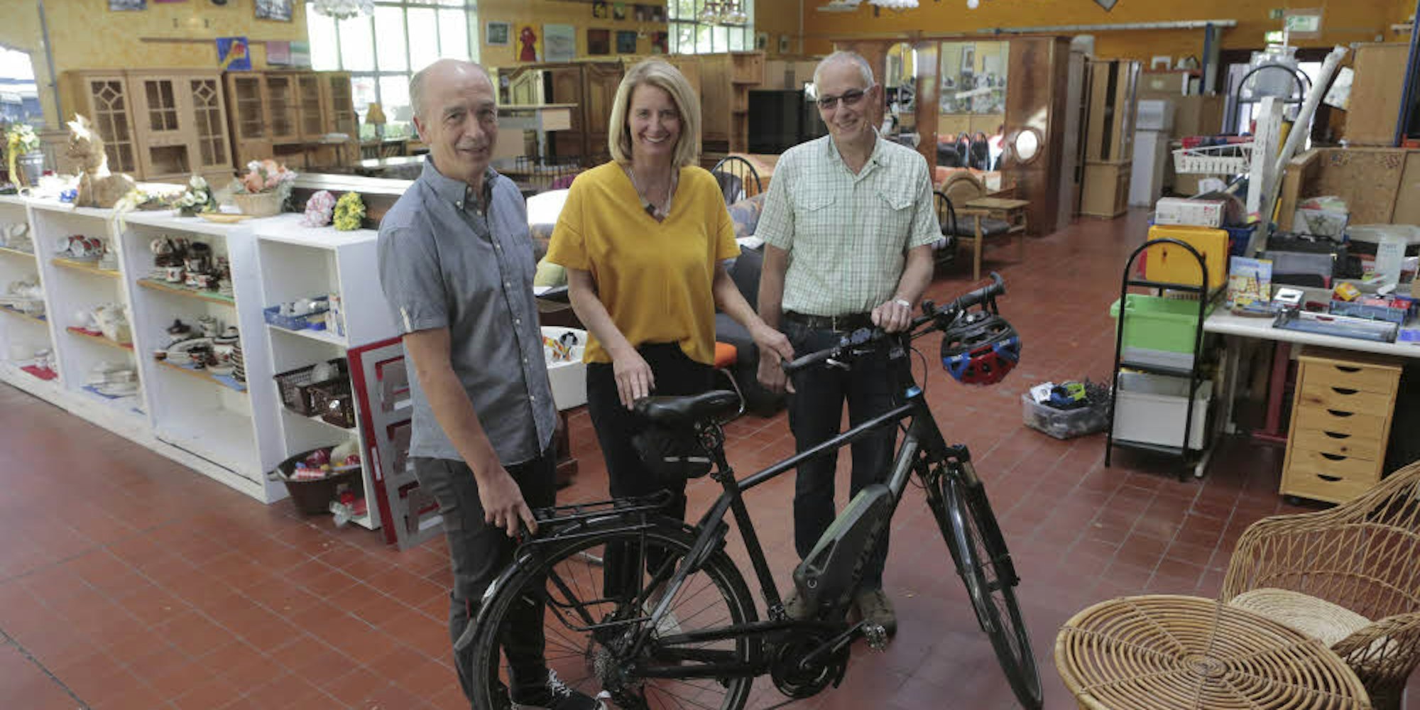Für den Verleih von E-Bikes durch die Ökumenische Initiative setzen sich Franz-Josef Beul (l.), Anne Loth und Dr. Herbert Sülz ein.