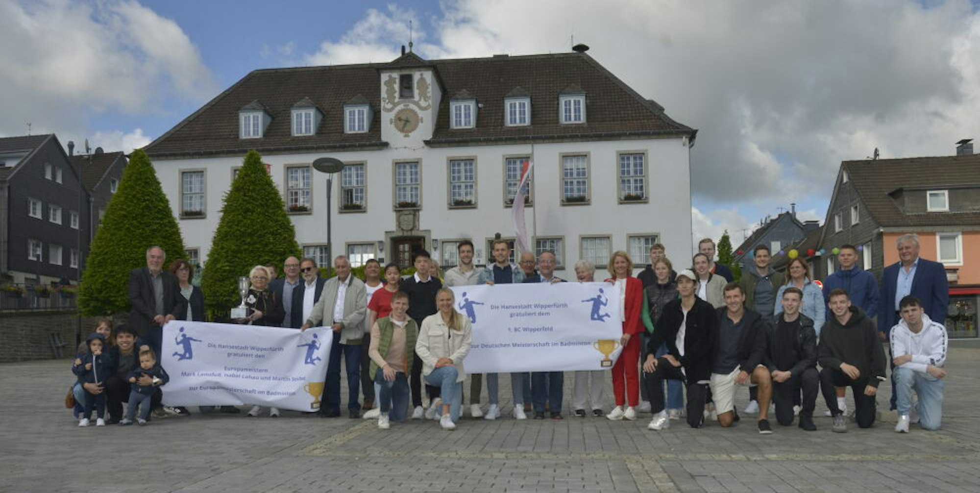 Wipperfürth – Mit einem Empfang und dem Eintrag ins Goldene Buch der Stadt haben Rat und Verwaltung das erfolgreiche Badminton-Team des BC Wipperfeld ausgezeichnet. Die 1. Mannschaft des vor elf Jahren gegründeten Vereins hat erstmalig die Deutschen Badmintonmeisterschaft gewonnen.