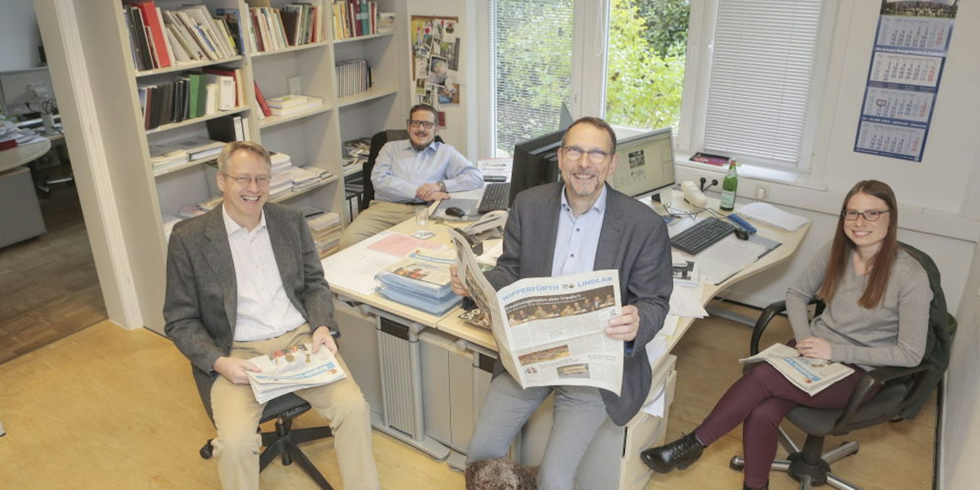 In der Lokalredaktion der Bergischen Landeszeitung am Marktplatz in Wipperfürth im Einsatz (v.r.): Linda Thielen, Michael Lenzen, Stefan Corssen und Lutz Blumberg.