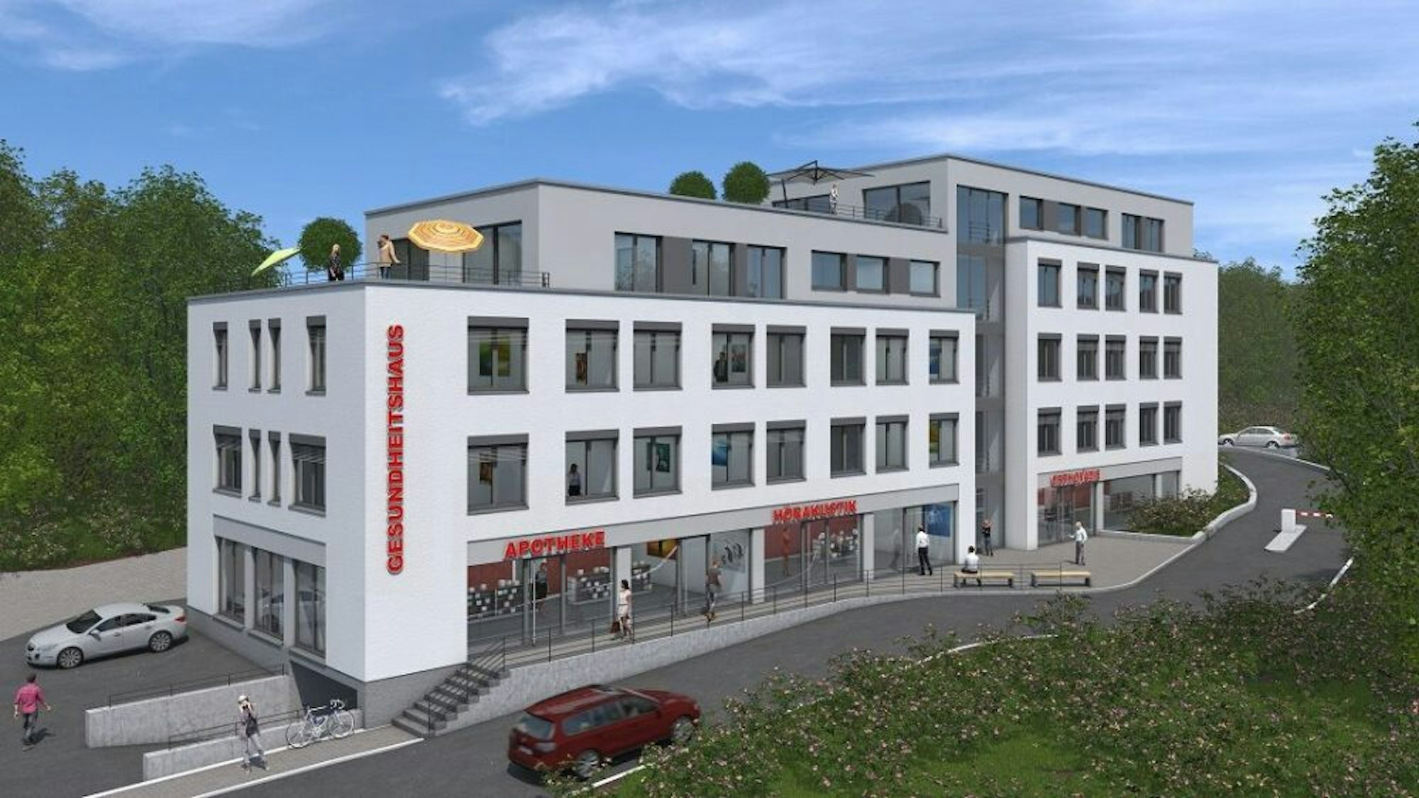 So soll das Ärztehaus an der Gaulstraße aussehen. Anstelle der hier gezeigten Apotheke ist allerdings eine Tagespflege vorgesehen.
