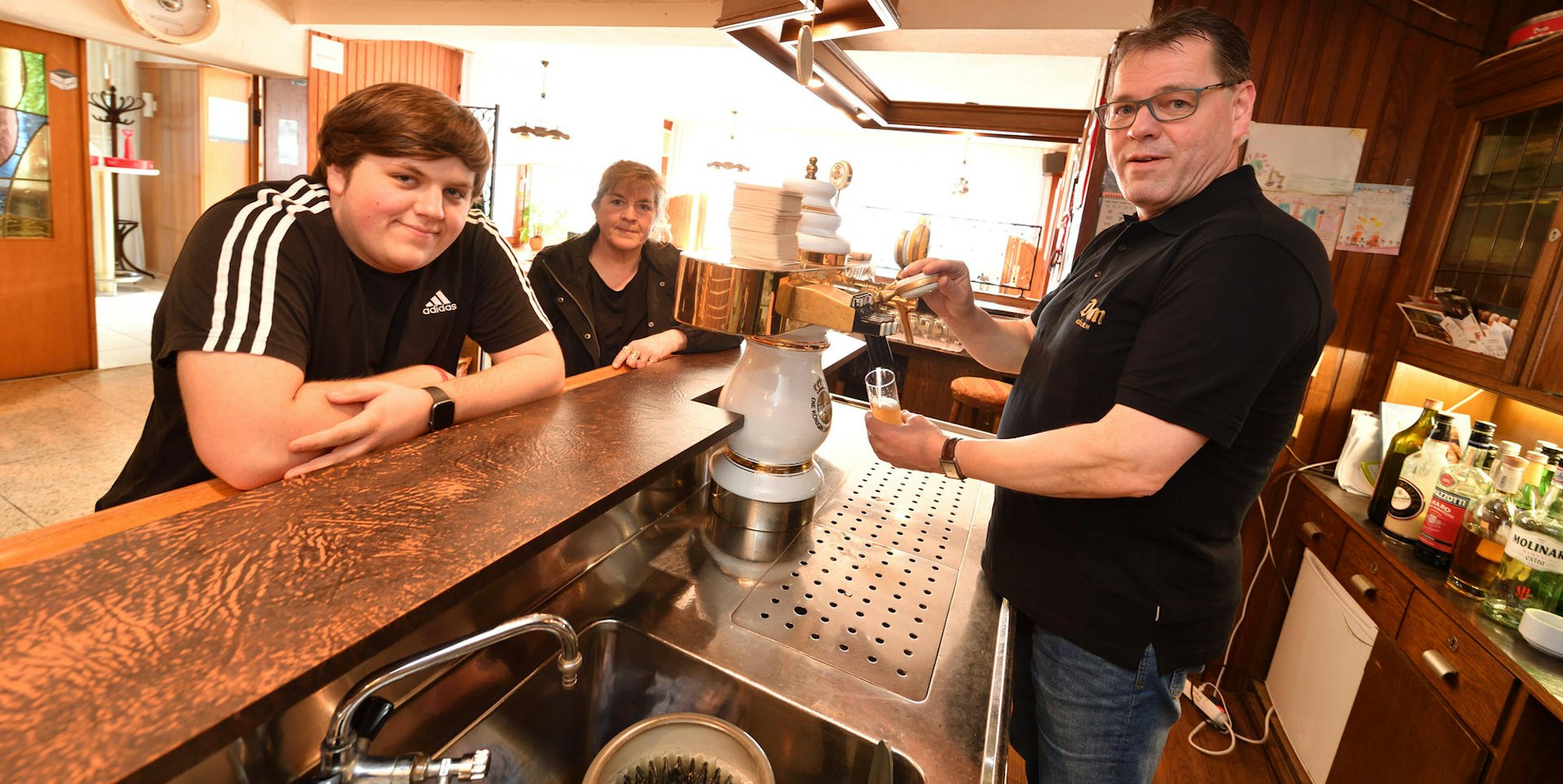 Das letzte Bier ist gezapft. Jason, Andrea Schüller-Ufer und Thomas Ufer haben die Dorfschänke geschlossen,