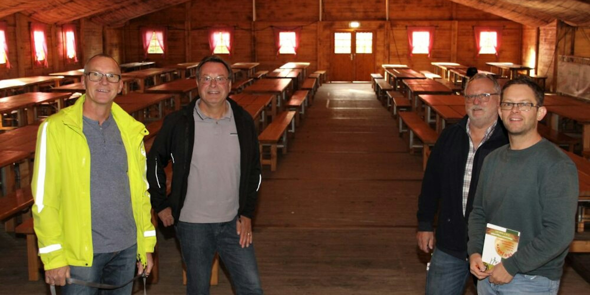 Das Festprogramm des „Almrausch - o’zapft is“-Abends steht, die große Almhütte der Firma Gebrüder Vöpel auch. Gleich hinter der Kirche an der Schule hat sie ihren Platz. „Die Spannung steigt“, berichten der Vorsitzende des Organisationsteams, Bernd Lamsfuß und Jürgen Becker, 1. Brudermeister, und dessen Stellvertreter Georg Büscheler. Auch beim Schützenkönigspaar Dennis Emmerich und Desiree Fuhs.
