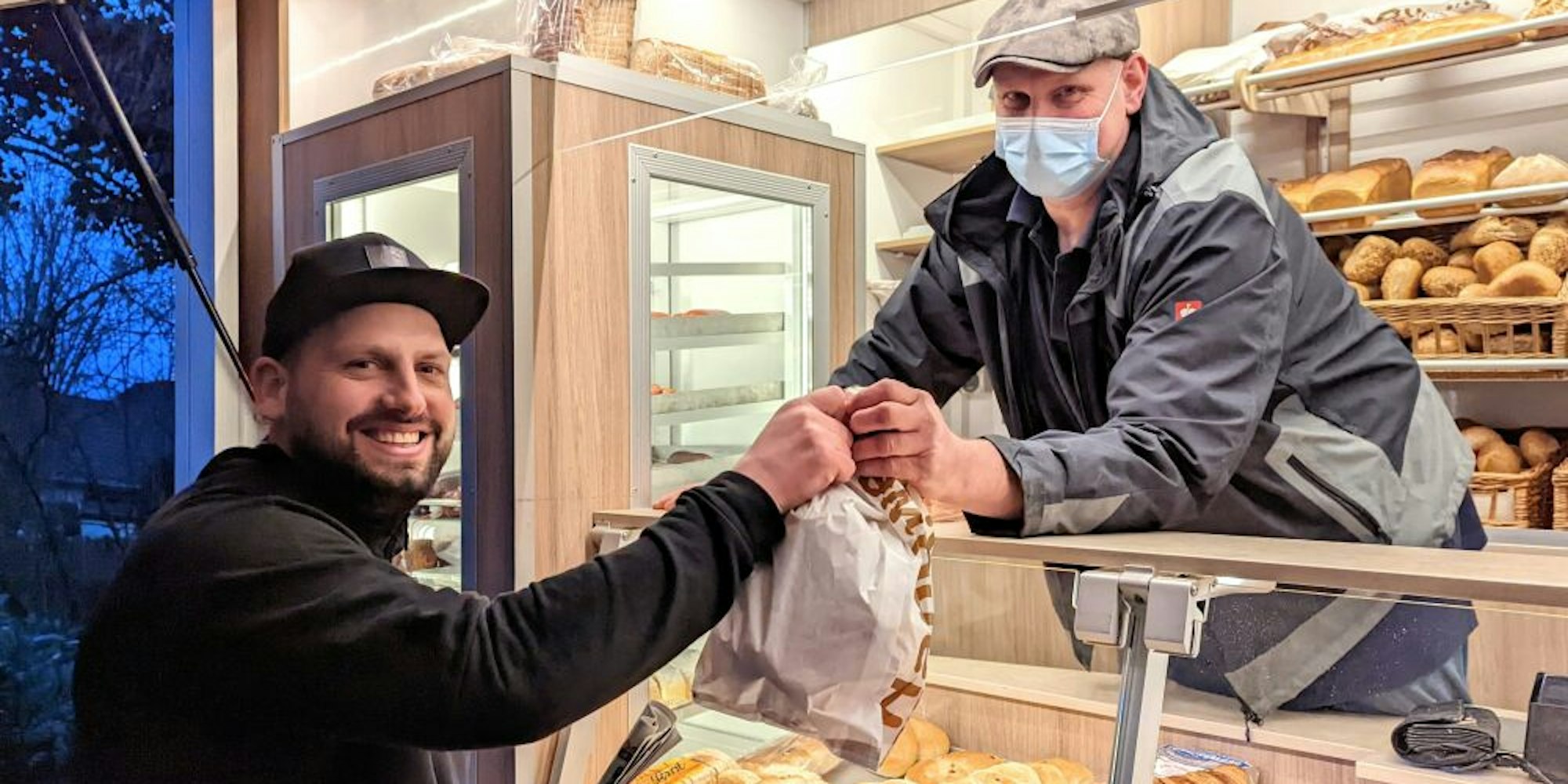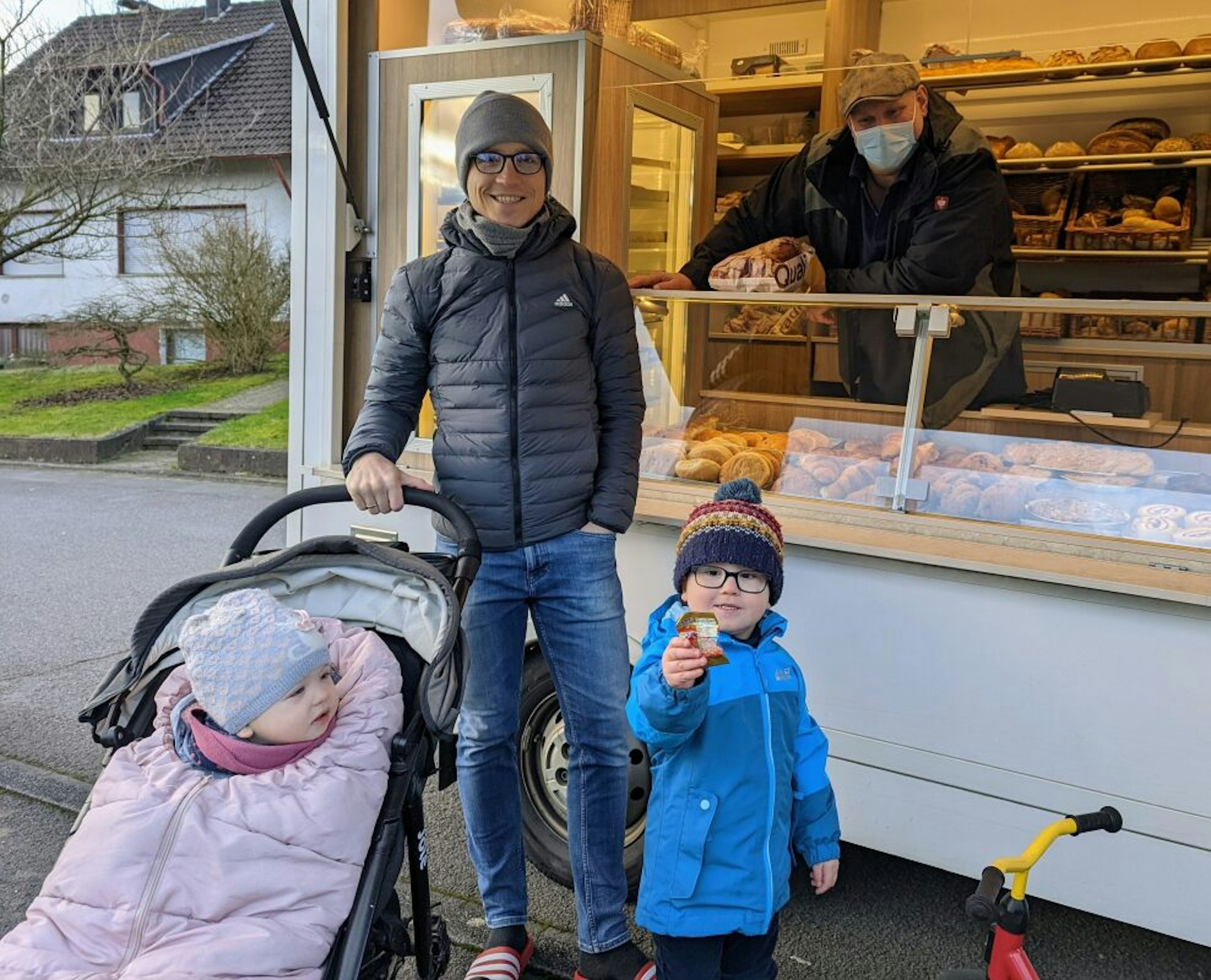 „Ah, da ist auch schon der erste Gummibärchen-Kandidat“, freut sich Lenort, als er Torben Sauermann mit seinem dreijährigen Sohn Leo am Straßenrand entdeckt. Während der Vater die Brötchen entgegennimmt, freut sich Leo über die Süßigkeiten. Auch die einjährige Greta ist dabei. Für viele Kunden bietet der Wagen neben der Möglichkeit der Nahversorgung auch eine Gelegenheit zum nachbarschaftlichen Austausch. „Das Brot schmeckt hier einfach am besten und man sieht auch im Winter die Nachbarn mal“, sagt die 54-jährige Dagmar Müller.