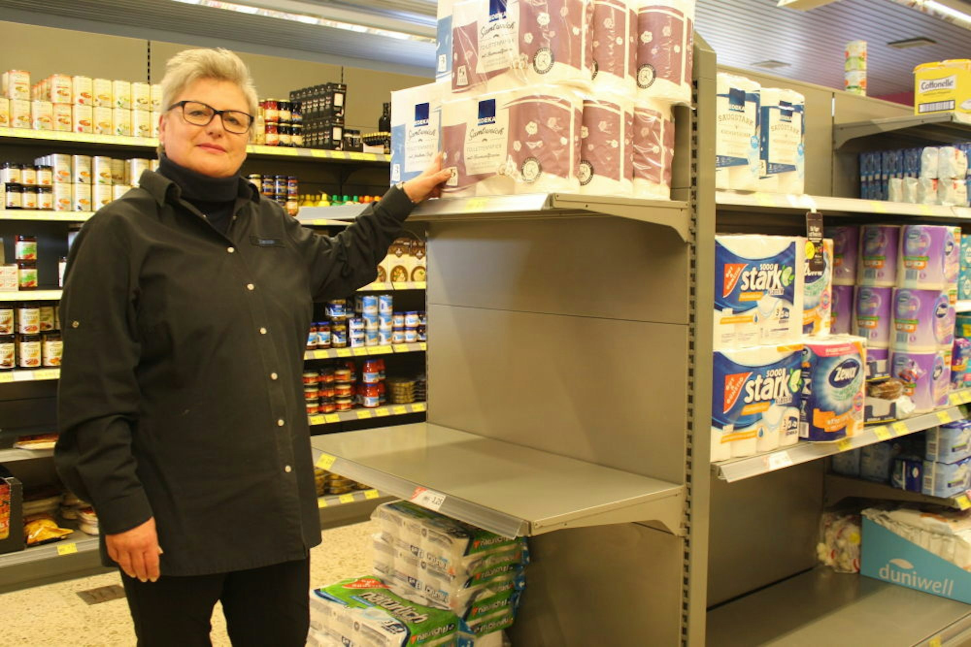 Toilettenpapier ist sehr begehrt. Birgit Braun vom Edeka-Markt Braun in Schmitzhöhe kommt mit der Ware kaum hinterher.