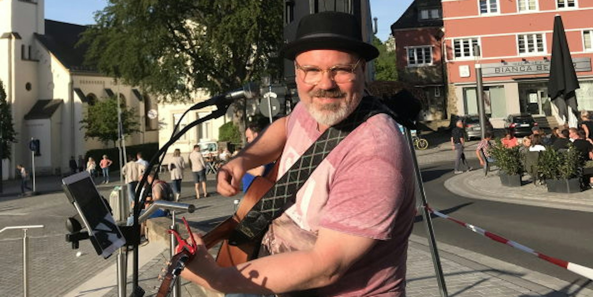 Der erste Auftritt nach langer Zeit. Mathias Nelles spielte am Sonntag mitten auf dem Marktplatz.