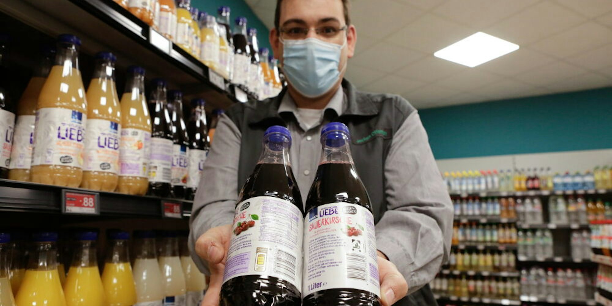 Hintergrund ist das Verpackungsgesetz, das zum 1. Januar 2022 die Pfandpflicht zum Beispiel auch auf Säfte ausweitet. Damit nach dem Stichtag kein Getränk vernichtet werden muss, füllt etwa der Marktführer Eckes-Granini bereits seit August ausschließlich in die Pfandflasche ab. „Momentan mischen sich bei uns die Bestände der aktuellen Lieferung mit denen der vorherigen“, erklärt Jochen Offermann, Inhaber der Edeka-Märkte und nennt weitere Situationen im Regal, die auf den ersten Blick verwundern.