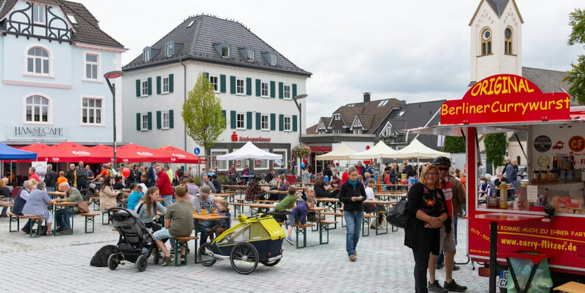 Bei Currywurst, Gitarrenmusik und einem Bierchen machten viele Besucher auf den Bänken eine kurze Rast, nachdem sie die Stände auf dem Marktplatz begutachtet hatten und stärkten sich für den anderen Teil des Festes: den verkaufsoffenen Sonntag. Der erste seit längerer Zeit. In den bunt geschmückten Gassen herrschte geschäftiges Treiben.