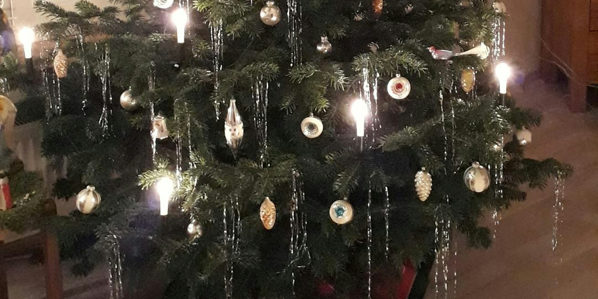 Ein letzter Blick auf den Baum. Bunte Reflexkugeln, silberne Zapfen, Vögelchen, Glöckchen und echtes Lametta – der Baum von Familie Wasserfuhr aus Wipperfeld war dieses Jahr ganz im Stile der Mitte des 20. Jahrhunderts gehalten.