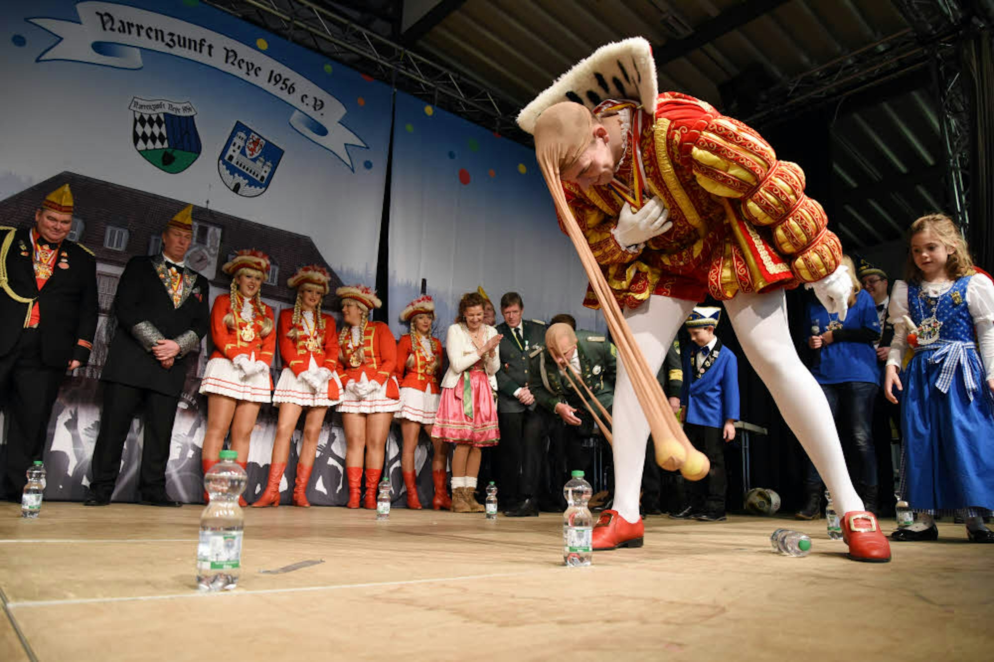 „Wir haben in diesem Jahr die höchste Beteiligung an Tollitäten und Vereinen seit Bestehen der Narrenarena und freuen uns auf tolle Wettkämpfe in den verschiedenen Spielen“, sagt René Löhr als Präsident der Narrenzunft Neye. So stellten neben den heimischen Jecken der Narrenzunft auch die Regenten der Vereine aus Fenke, Dabringhausen und Ründeroth sowie Bielstein ihr sportliches Geschick unter Beweis.