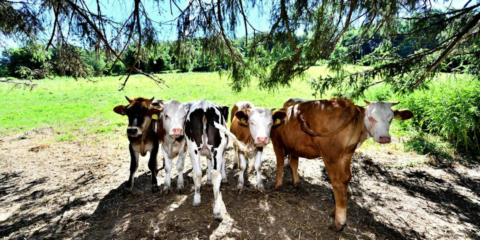 Kälber suchen im Schatten Schutz vor der Sommerhitze.