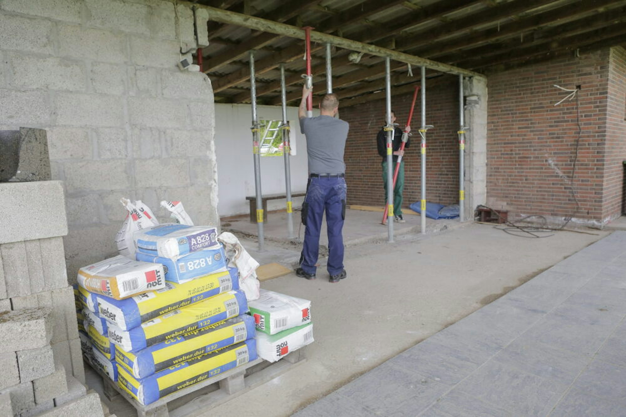 Umgehend wurde mit den Arbeiten am Vereinsheim am Sportplatz begonnen. Derzeit stehen der Umkleide- und Sanitätsbereich im Fokus. Die alten Fliesen und sanitären Anlagen sind raus, der Fliesenleger am Werk. Neben den Handwerkern helfen auch die eigenen Sportler mit, wie die Kicker der A-Jugend. In der Pandemiezeit stärkt das die Identifizierung mit „ihrem“ Sportverein.