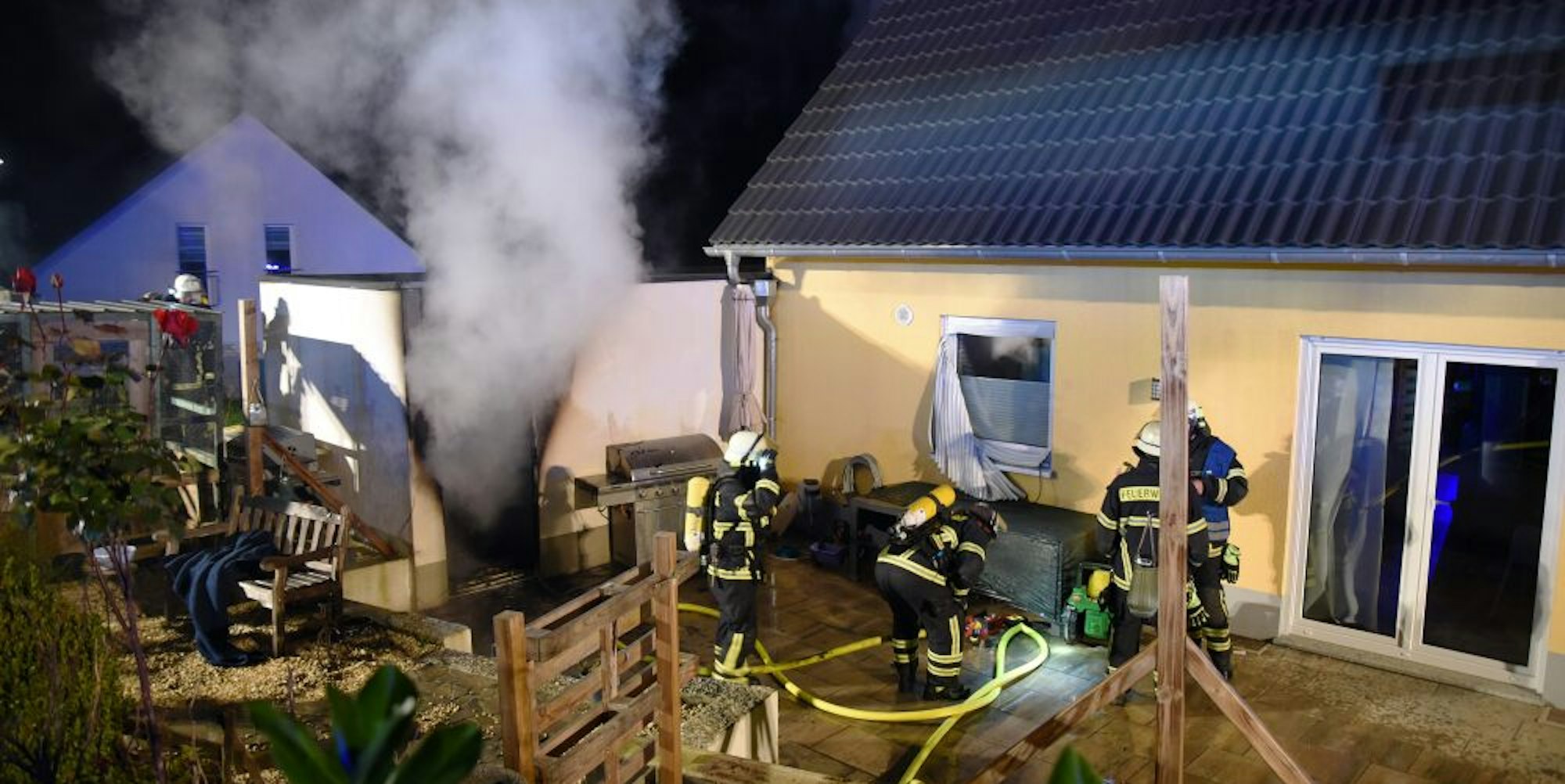 Das Unglück ereignete sich auf der Terrasse. Die angrenzende Garage geriet in Brand und wurde von der Feuerwehr gelöscht.