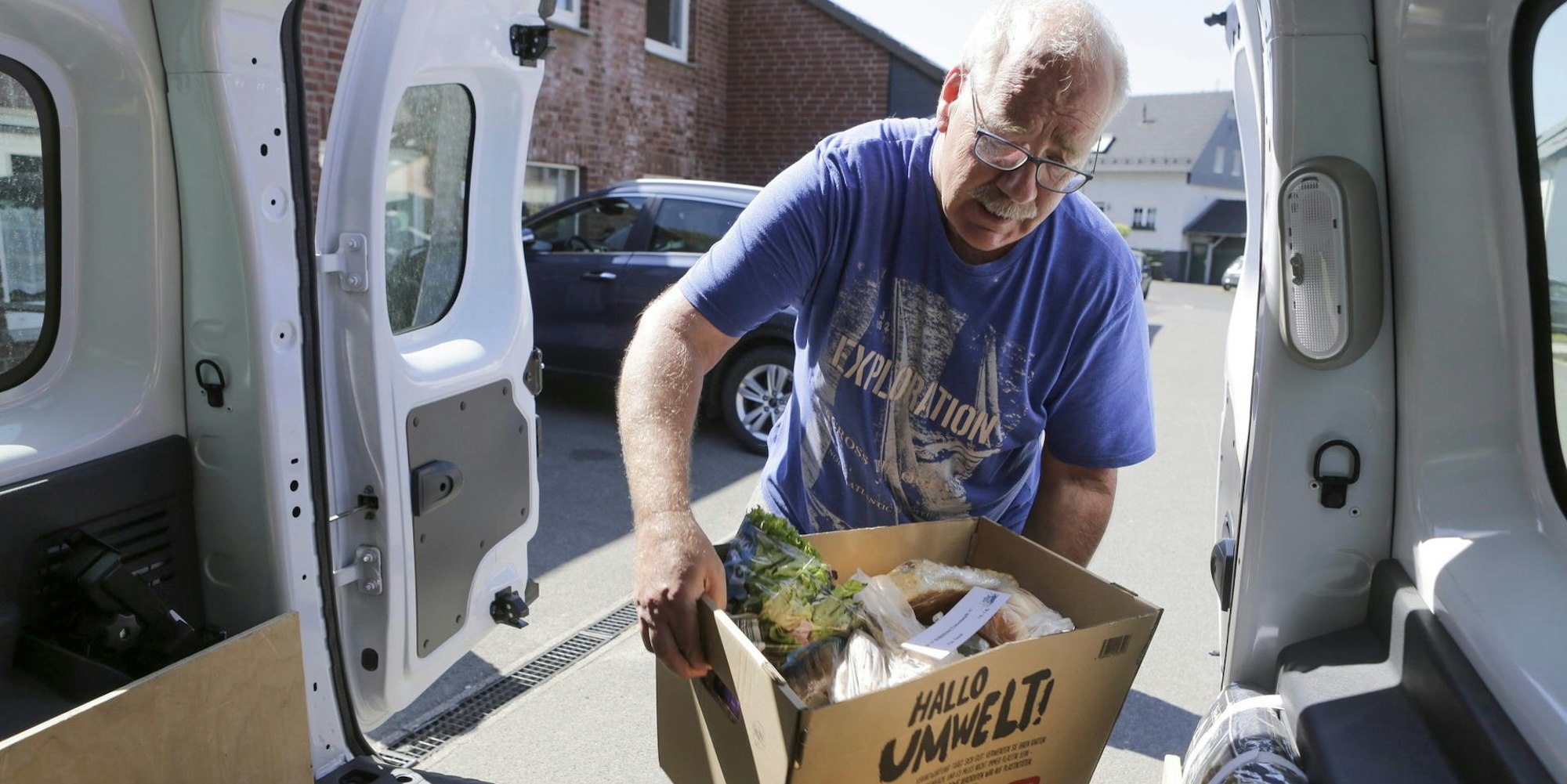 Lebensmittelspenden für Bedürftige lädt hier Uwe Ismer in das Auto von Lindlar-verbindet.