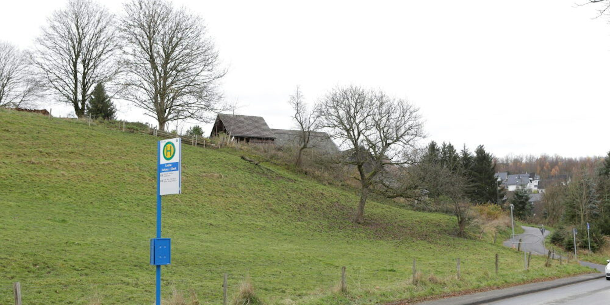 Auf dem Areal hinter dem Bushalteschild bis zur Straße „Auf dem Ufer“ sollen die drei Mehrfamilienhäuser gebaut werden.