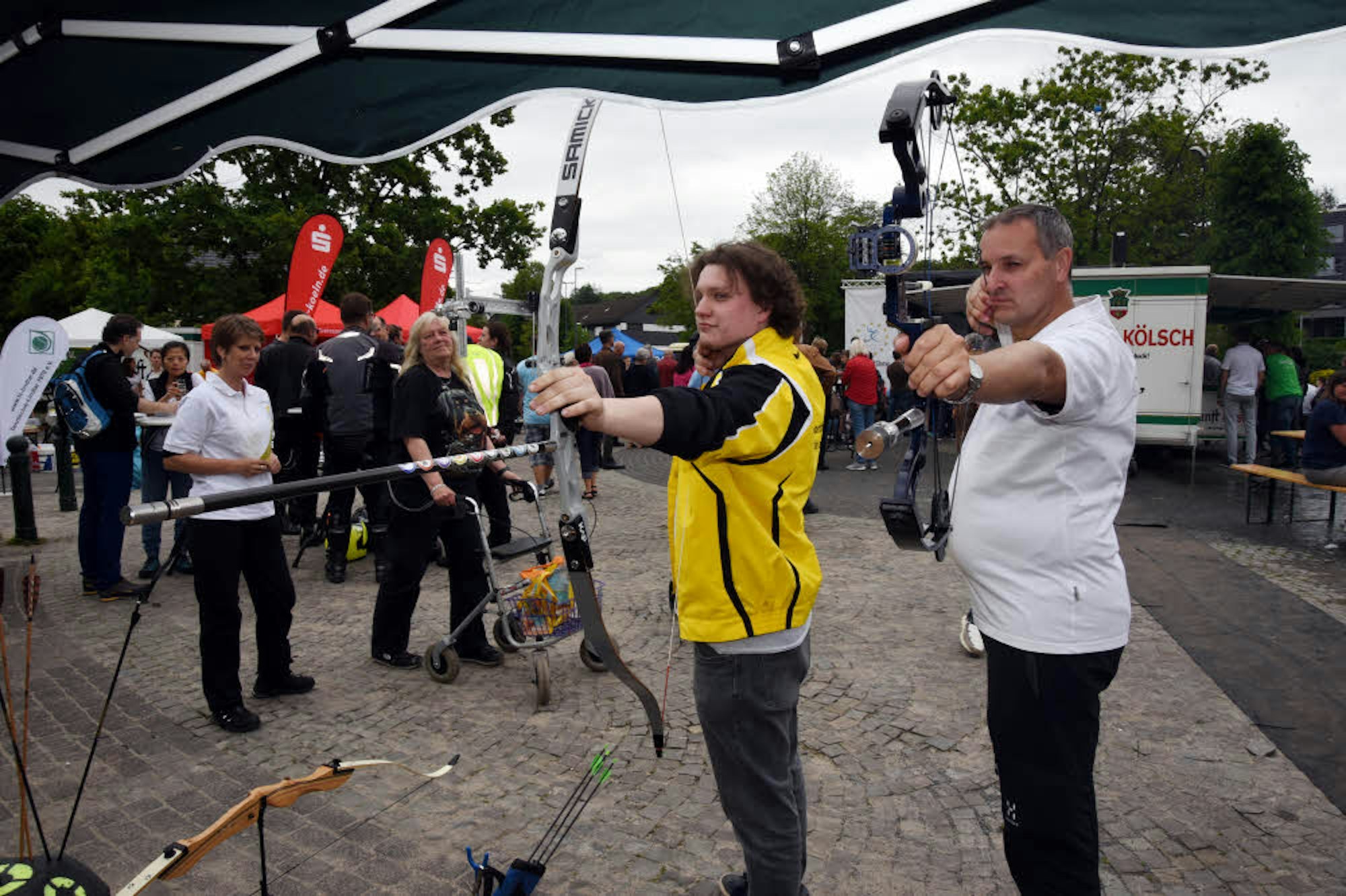 Werbung für den Bogensport machten Vincent Juhl (l.) und Nick Andreas von den Bogenschützenfreunden Lindlar.