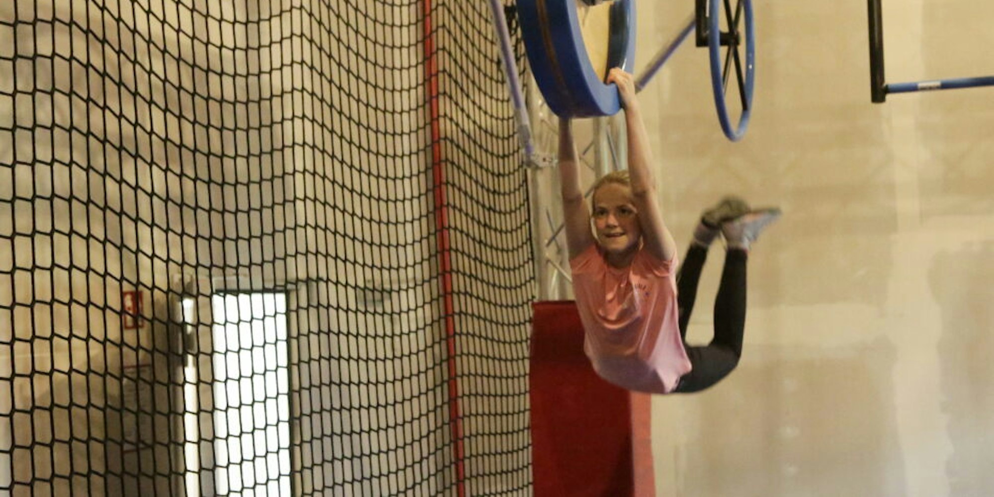 Sara führt den Ninja-Parcours in Lindlar vor.