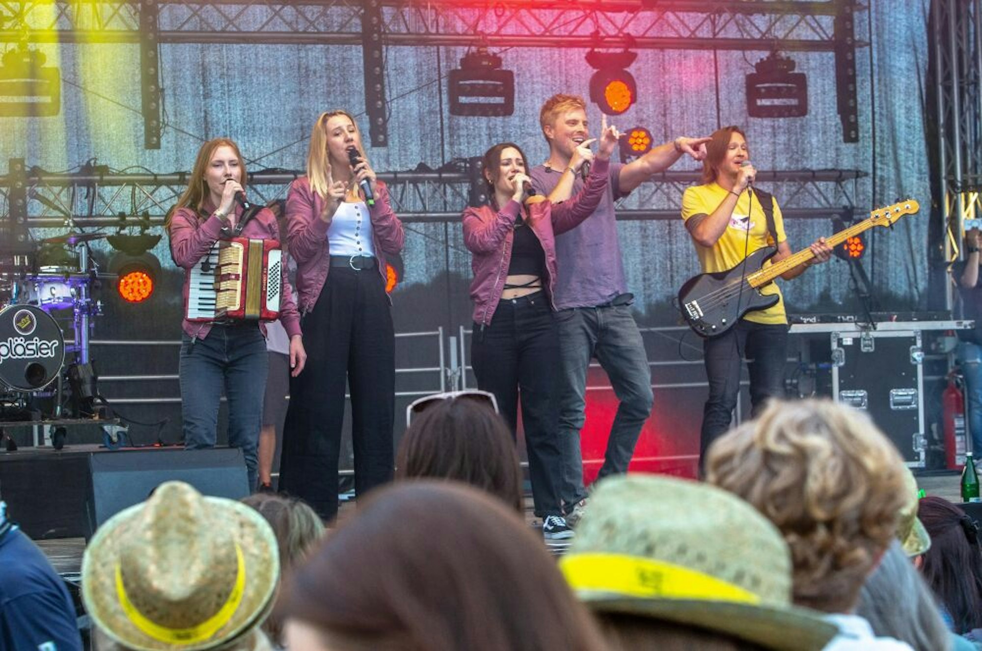 Den Auftakt gaben die Paveier, die ja sowieso eine enge Bindung zu Lindlar haben. Die Männer um Sänger Sven Welter brauchten genau eine Sekunde, um die Rakete zu zünden. Mit „Tanz mit mir durch die Nacht“ hatten sie die Menge sofort im Griff. Dass die Superstars der kölschen Musikszene schon so früh dran waren, lag an einem Folgeauftritt am Abend und sorgte mit Sicherheit für Enttäuschung bei einigen, die erst später zum Festival kamen. Ganz sicher haben die Jungs das Format eines Headliners.