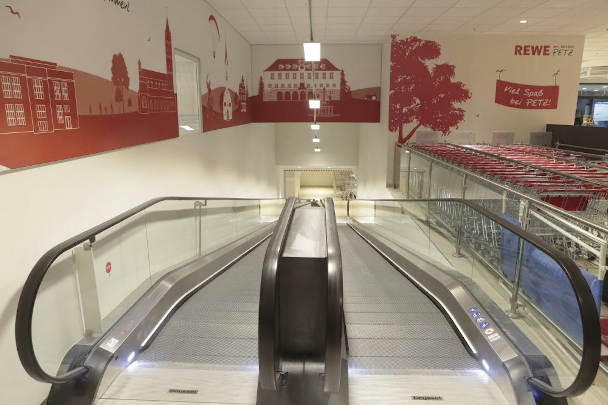 Seit Ende Dezember hatte der Supermarkt der Petz Rewe Group wegen der Sanierungs- und Umbauarbeiten geschlossen. Seitdem hat sich einiges getan: „Die größten Neuerungen sind sicherlich die Rollsteige, die in die sanierte Tiefgarage und zu den Tedi- und Kik-Filialen im Obergeschoss führen. Außerdem gibt es einen neuen großen Aufzug, der die beiden alten Aufzüge ersetzt“, so Wieschalla.