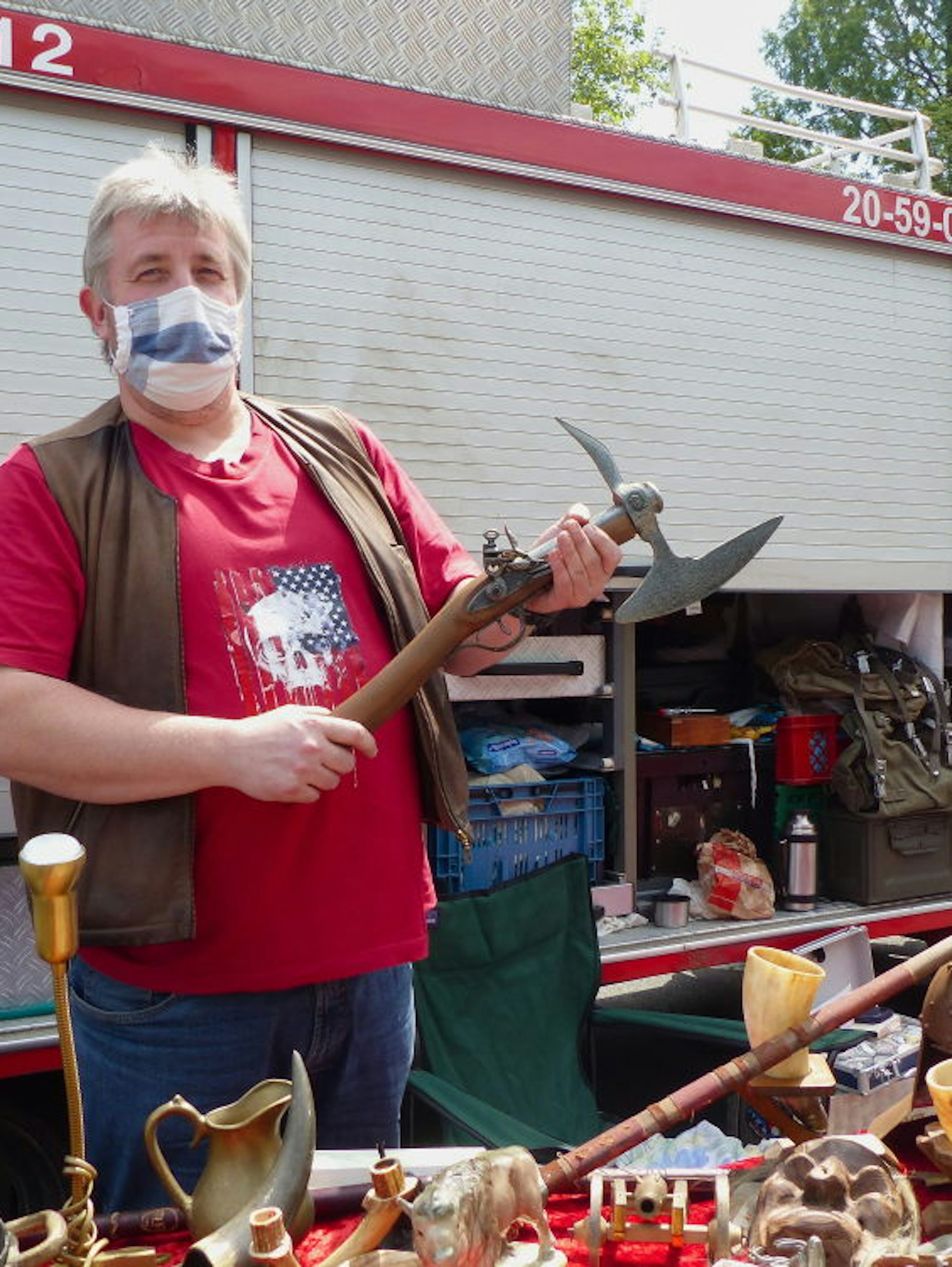 „Vieles hat sich durch die Corona-Krise hier nicht verändert“, hat er festgestellt. „Klar tragen alle eine Maske und der Mindestabstand zwischen mir und den Kunden ist durch den Tisch auch gegeben, aber mit dem Andrang und dem Kaufinteresse der Kunden bin ich doch sehr zufrieden“, berichtet der Trödel-Profi.