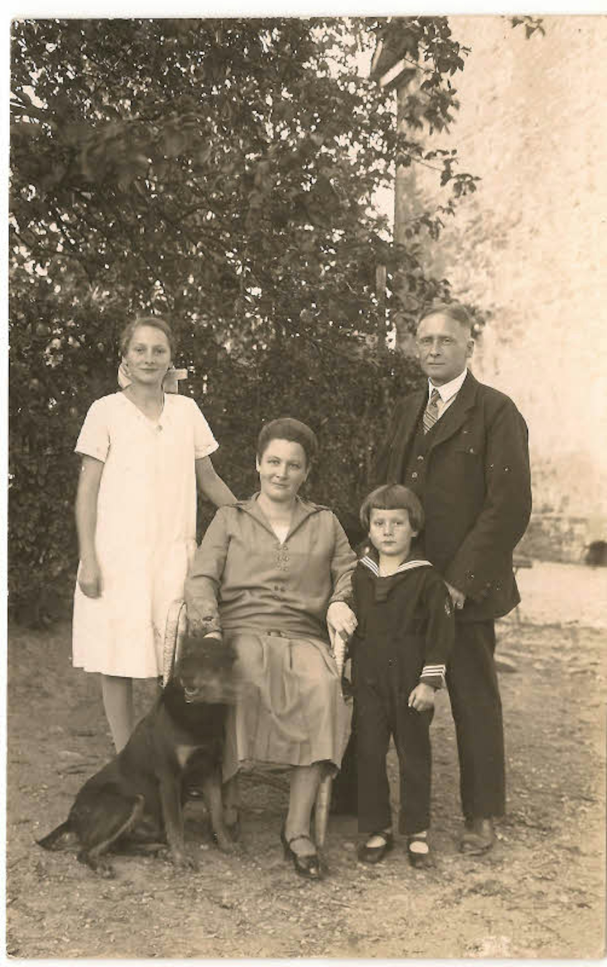 Eine Seite aus der Hermesdorfer Schulchronik aus dem Jahr 1861 (l.) , verfasst von Lehrer Martin Wirths. Die Chronik fand sich im Nachlass von Lehrer Friedrich Bals (r. mit seiner Familie). Bals lebte und lehrte an der Dorfschule von 1911 bis 1948.
