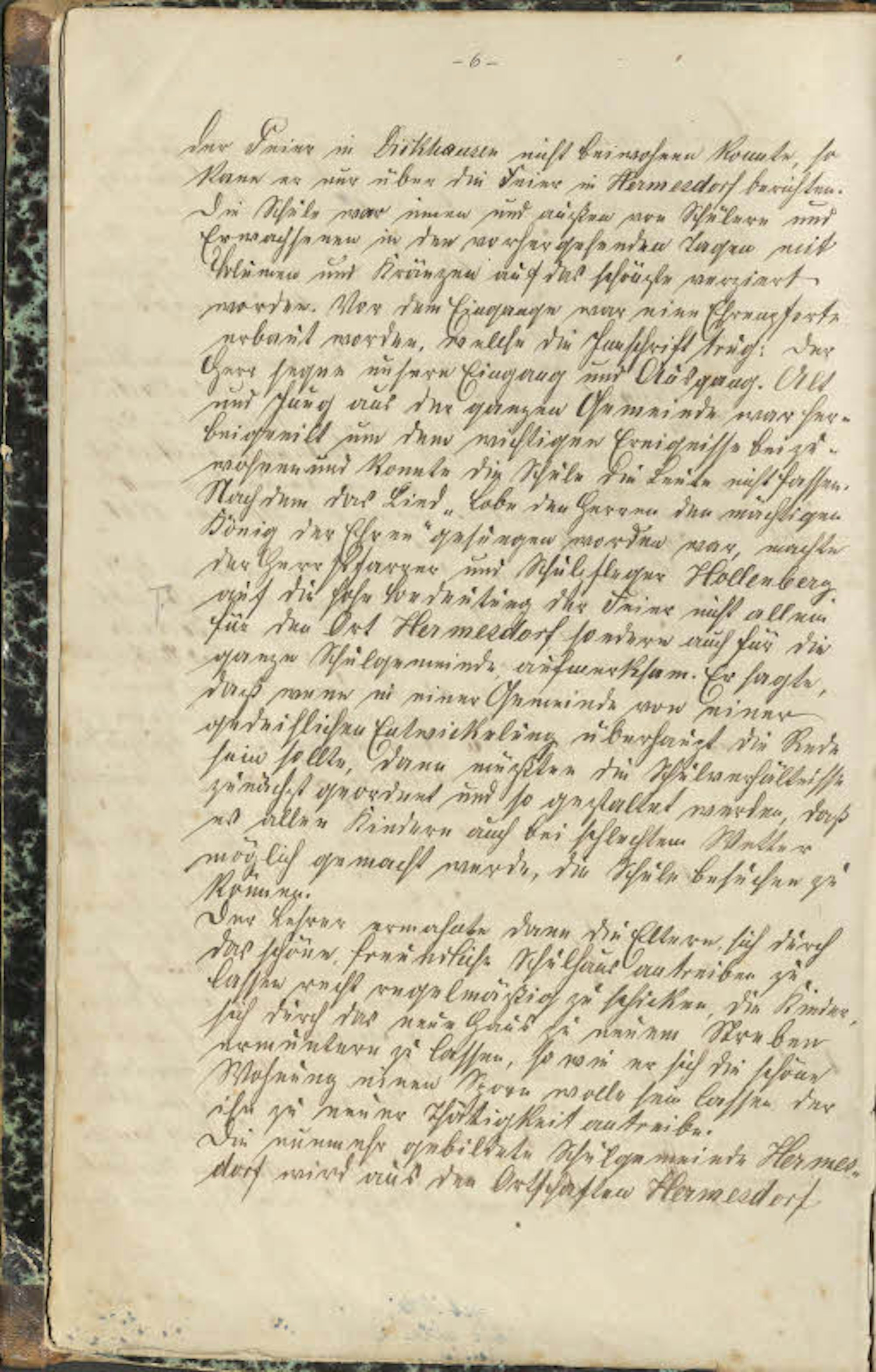 Die Chronik fand sich im Nachlass von Lehrer Friedrich Bals. Bals lebte und lehrte an der Dorfschule von 1911 bis 1948.