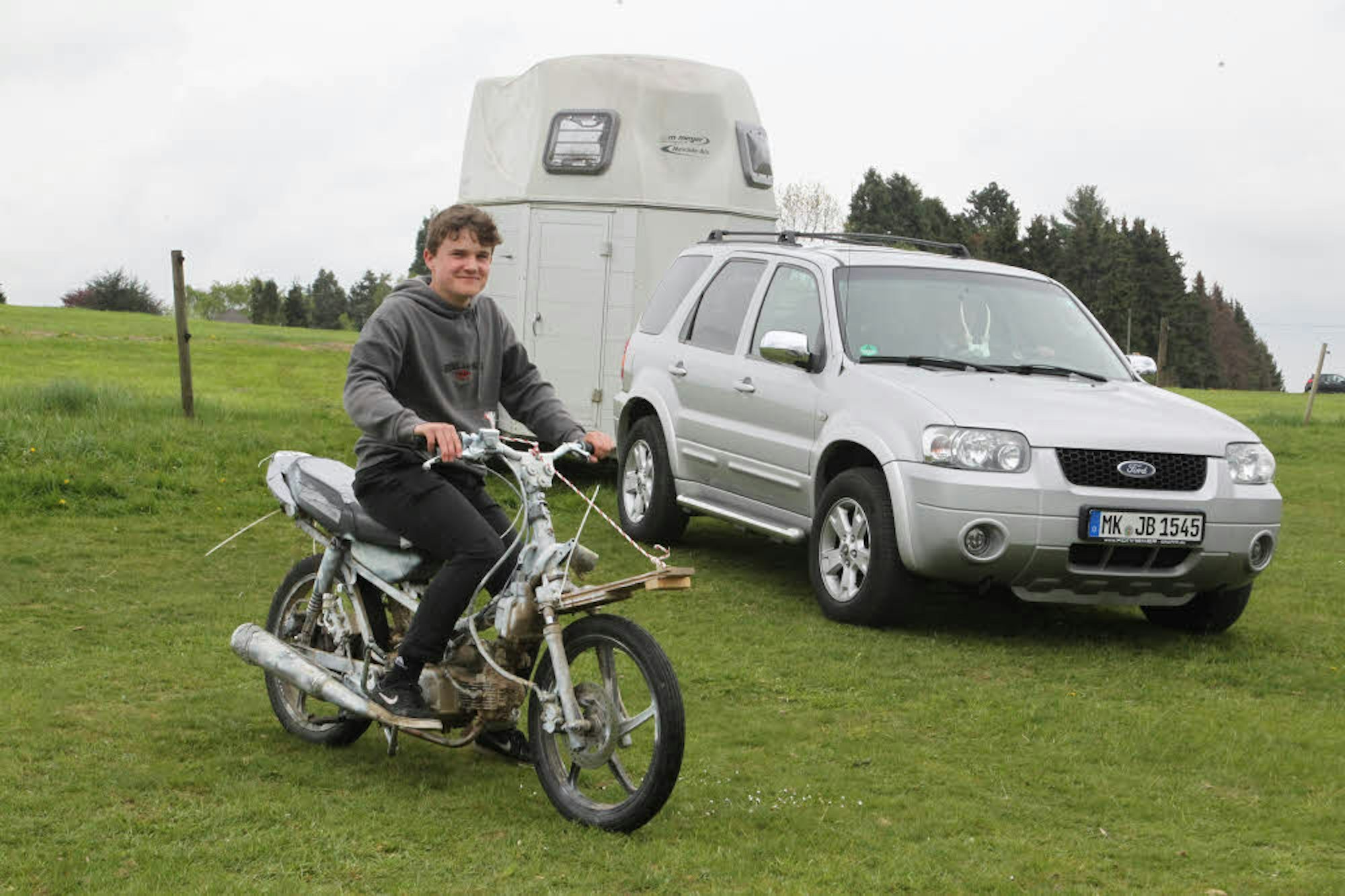 Mit dem Mofa weist Till Dahlhaus die Gespanne ein.