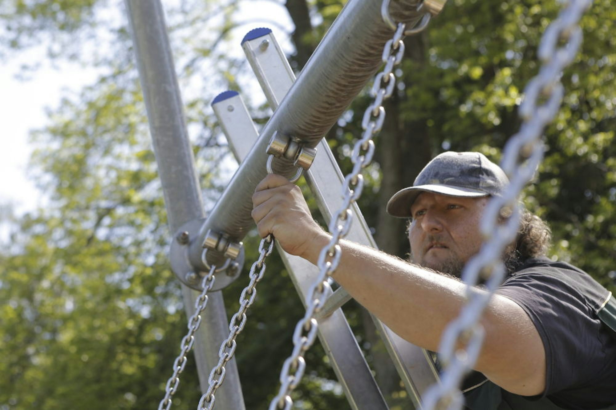 Eigentlich ist er gelernter Bäcker, die Lizenz zum Prüfen hat er auf Lehrgängen erworben, seit dreieinhalb Jahren macht er das nun schon. Der Markt der Spielplatzprüfer ist durchaus umkämpft, es tummeln sich auch Ingenieurbüros und Architekten zwischen den Rutschen und Wippen, darunter auch schwarze Schafe. „Ich bin schon zu Spielplätzen gekommen, die eigentlich geprüft worden sind, da habe ich nur die Hände über dem Kopf zusammengeschlagen“, erzählt der Oberfranke.
