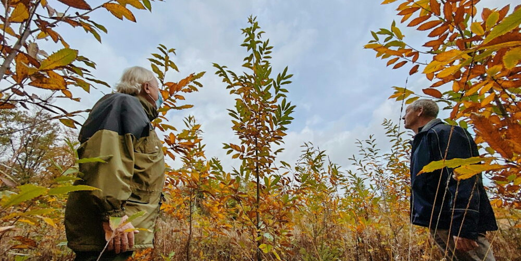 Im Peffeköfer Holz wachsen Kastanienbäume. Werner Sülzer und Peter Steeger (r.) haben sie gepflanzt.